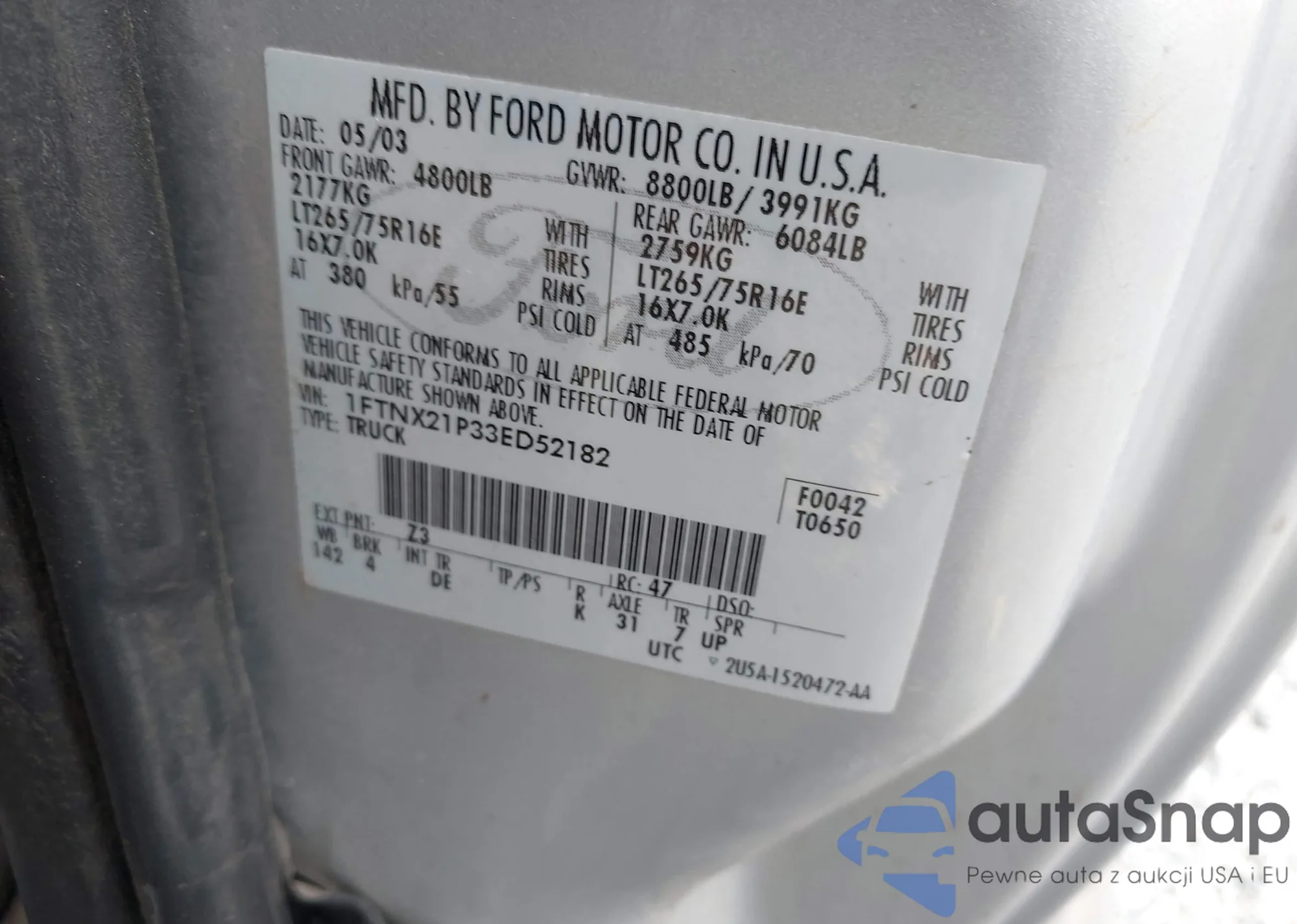 • VIN 1FMNU42S5YED24233