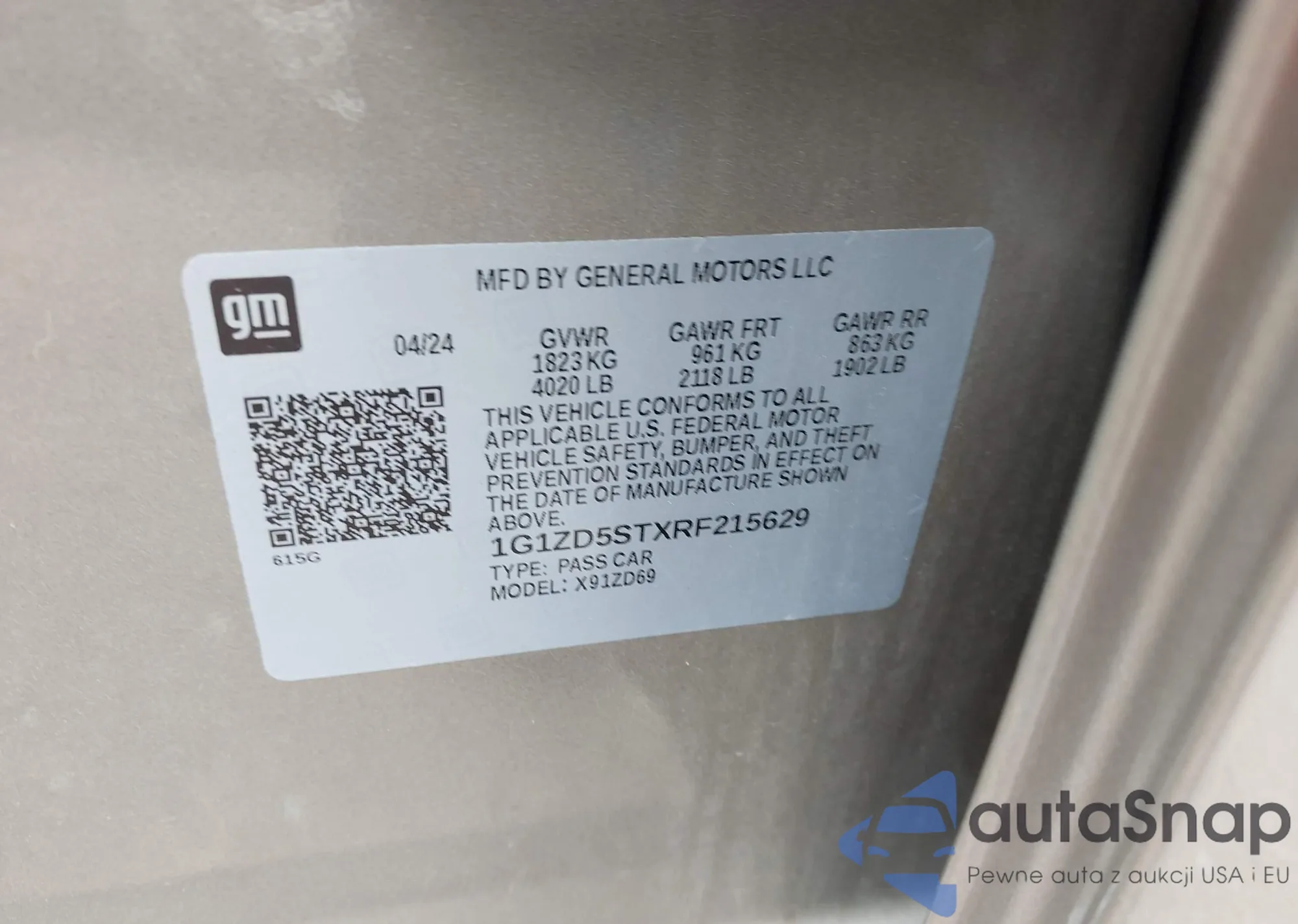 • VIN 1G1ZD5STXRF215629