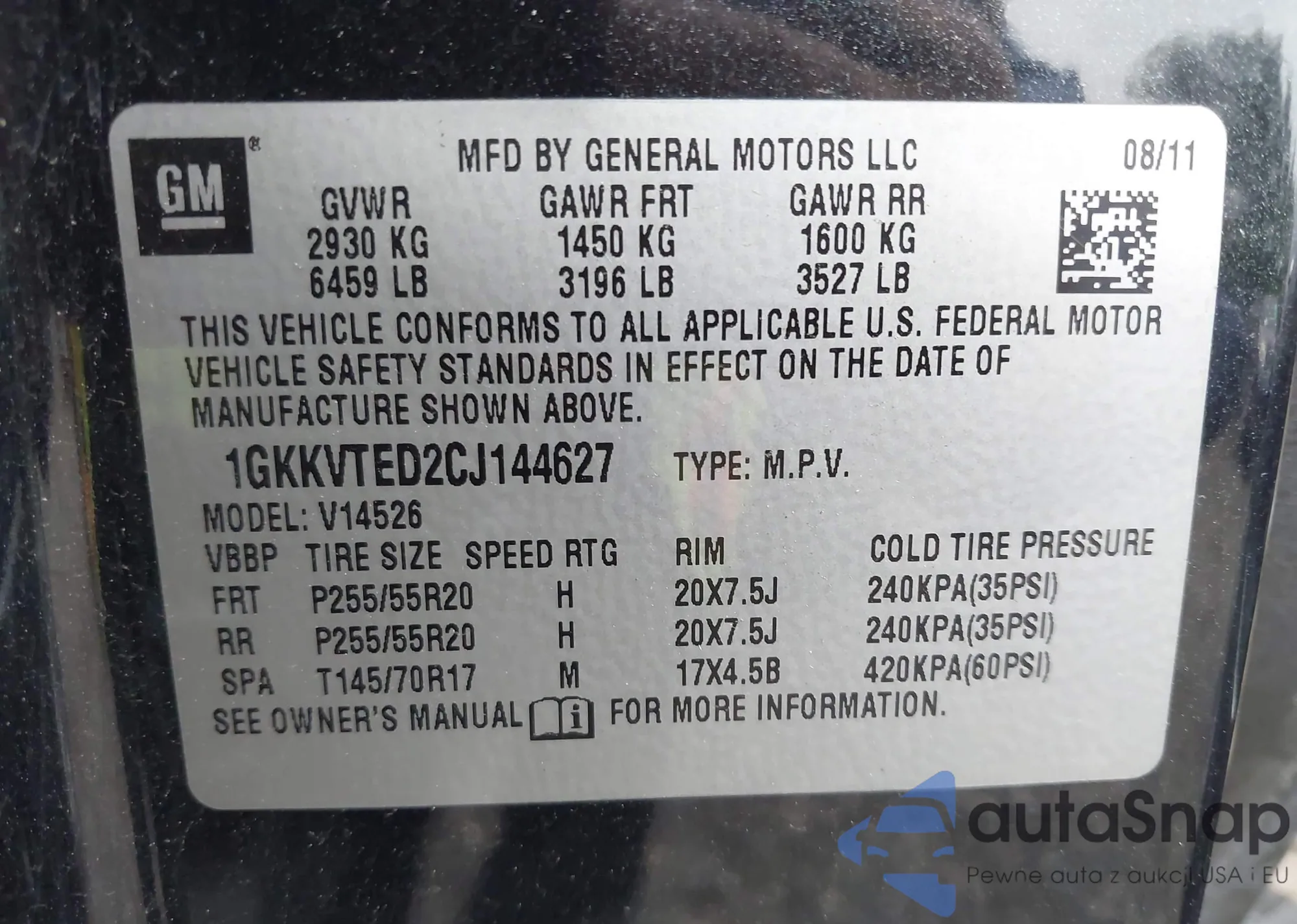 LOT: 43039487 VIN: 1GKKVTED2CJ144627