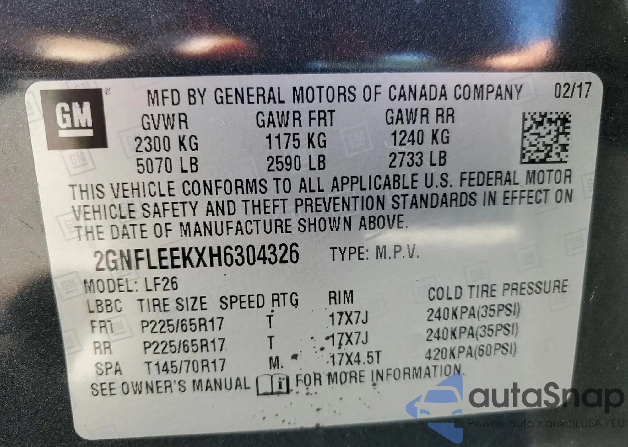 • VIN 2GNFLEEKXH6304326