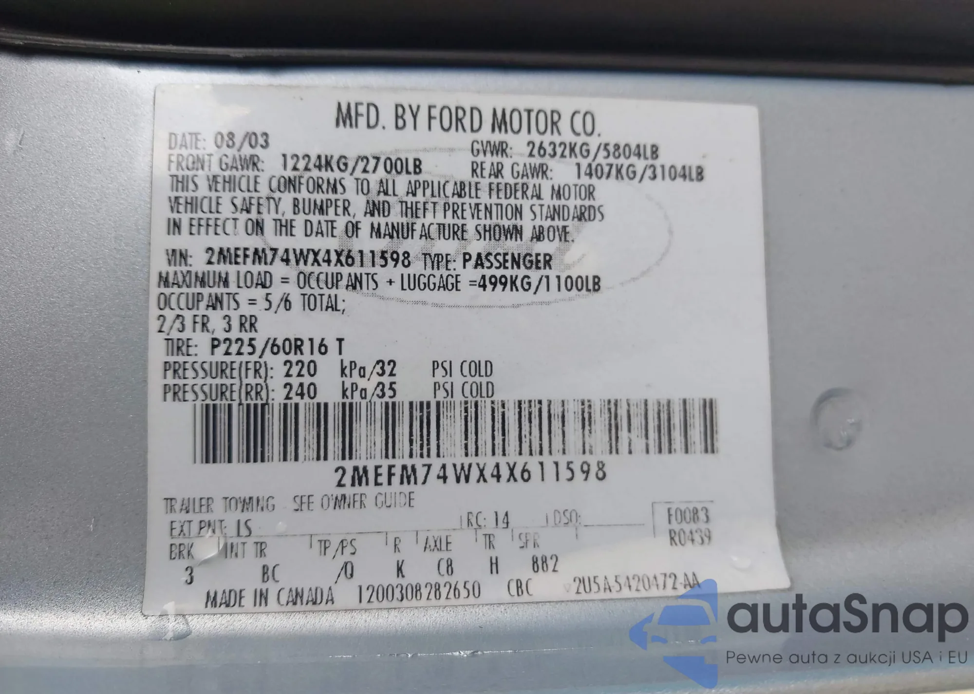 • VIN 3C8FY4BB81T607307