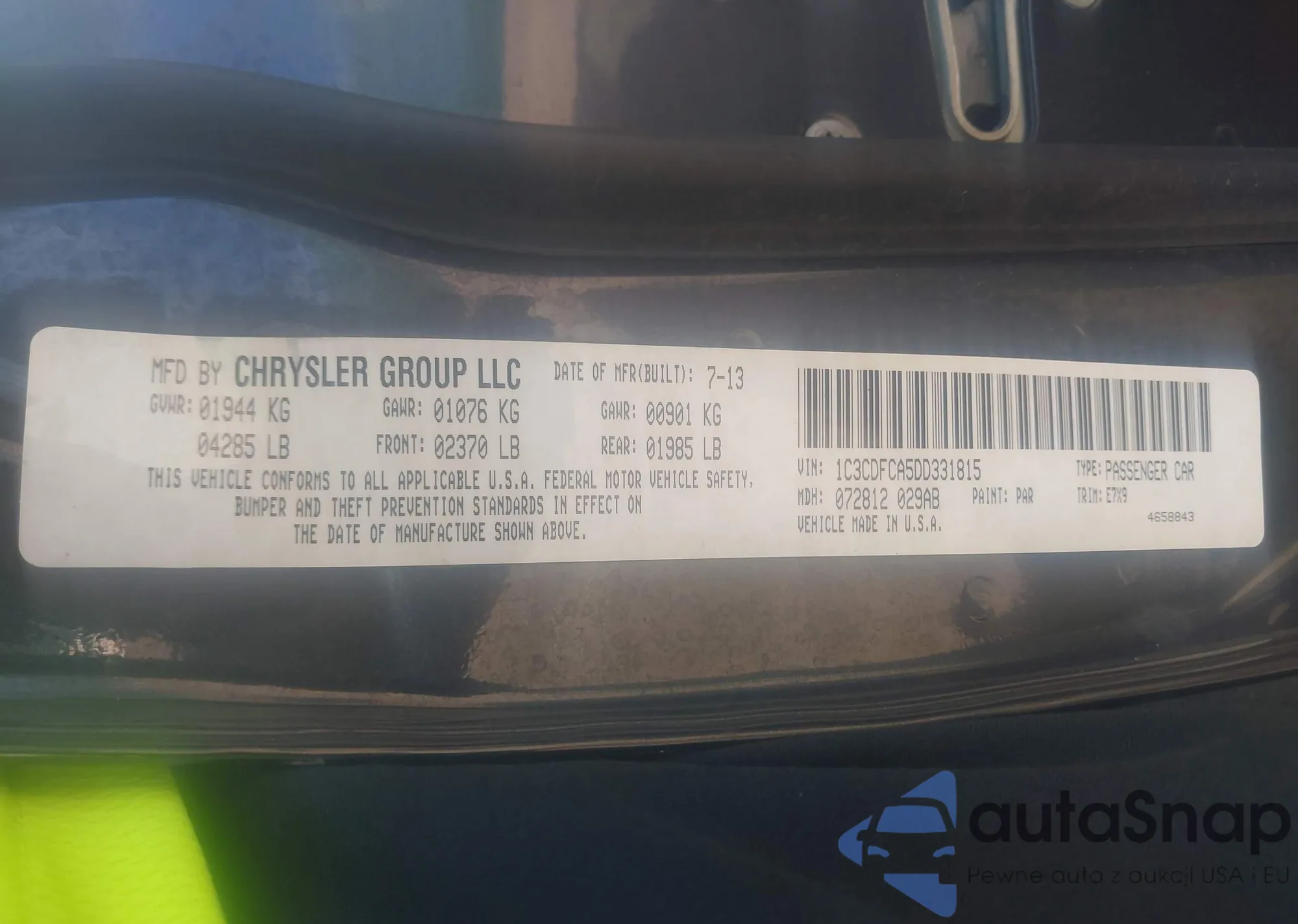 • VIN 1C3CDFCA5DD331815
