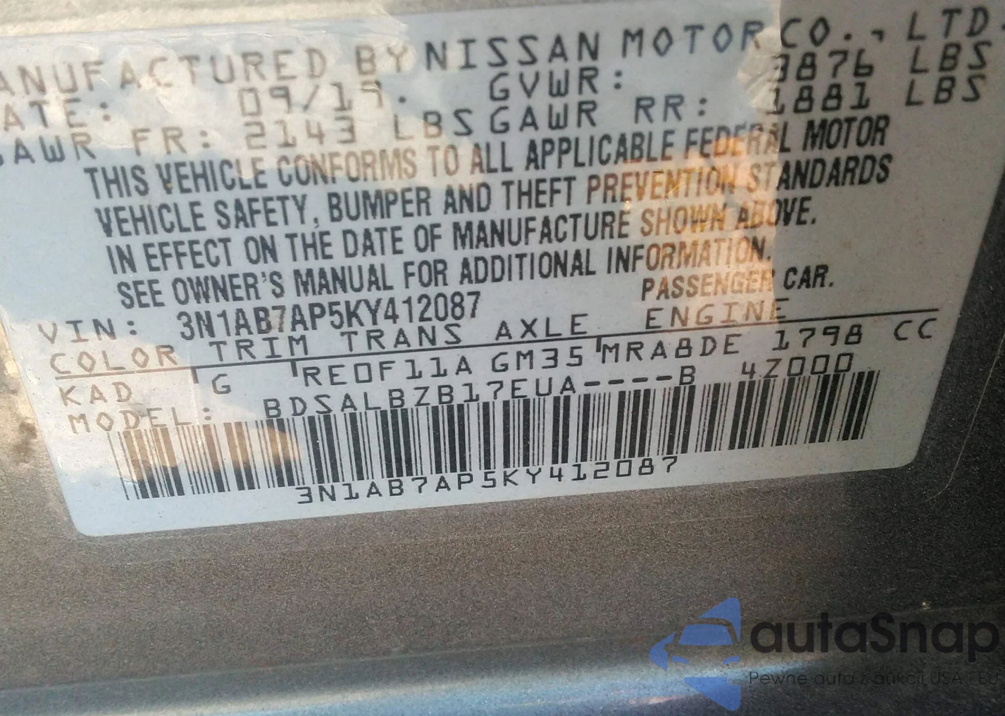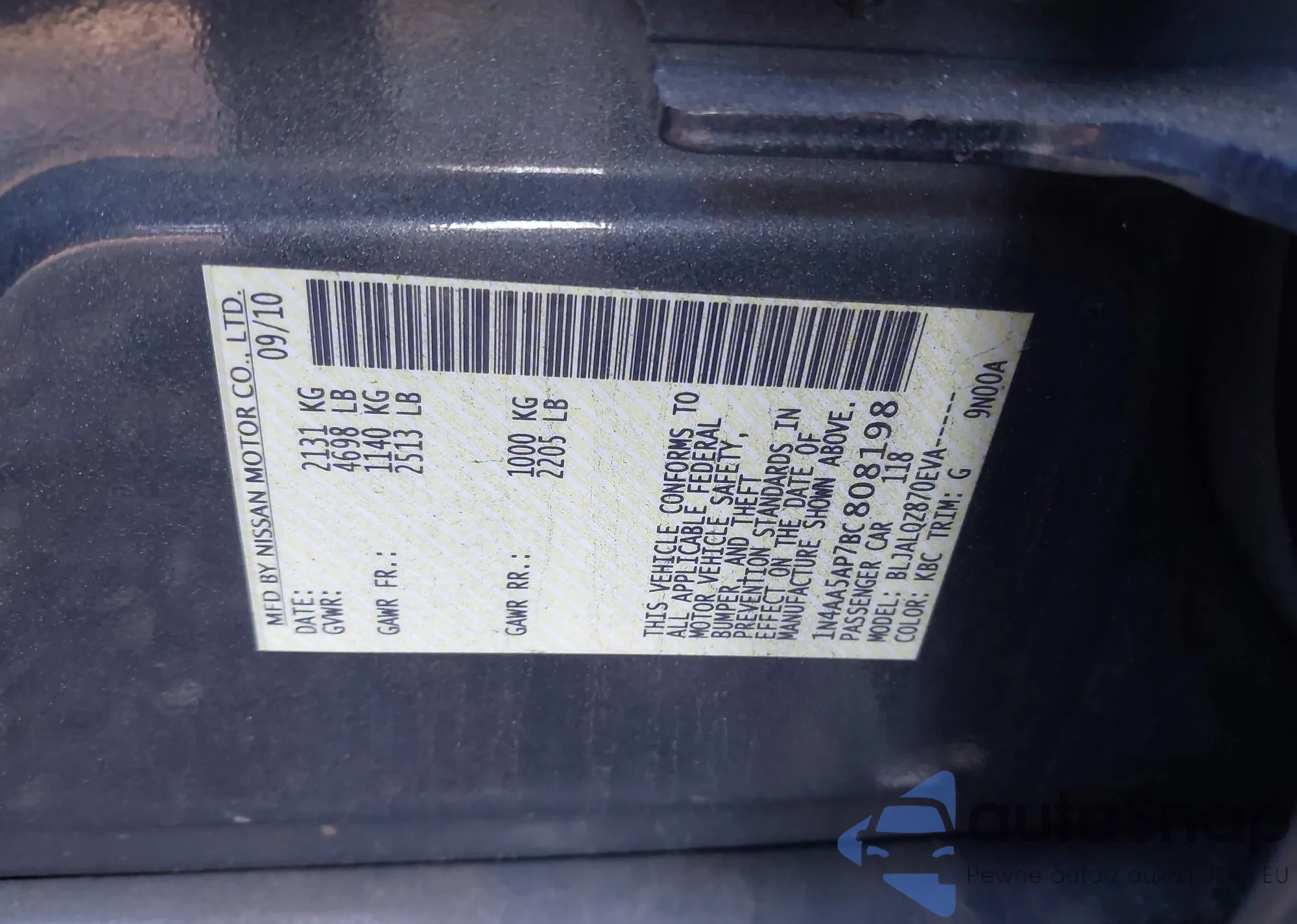 LOT: 43347342 VIN: 1N4AA5AP7BC808198