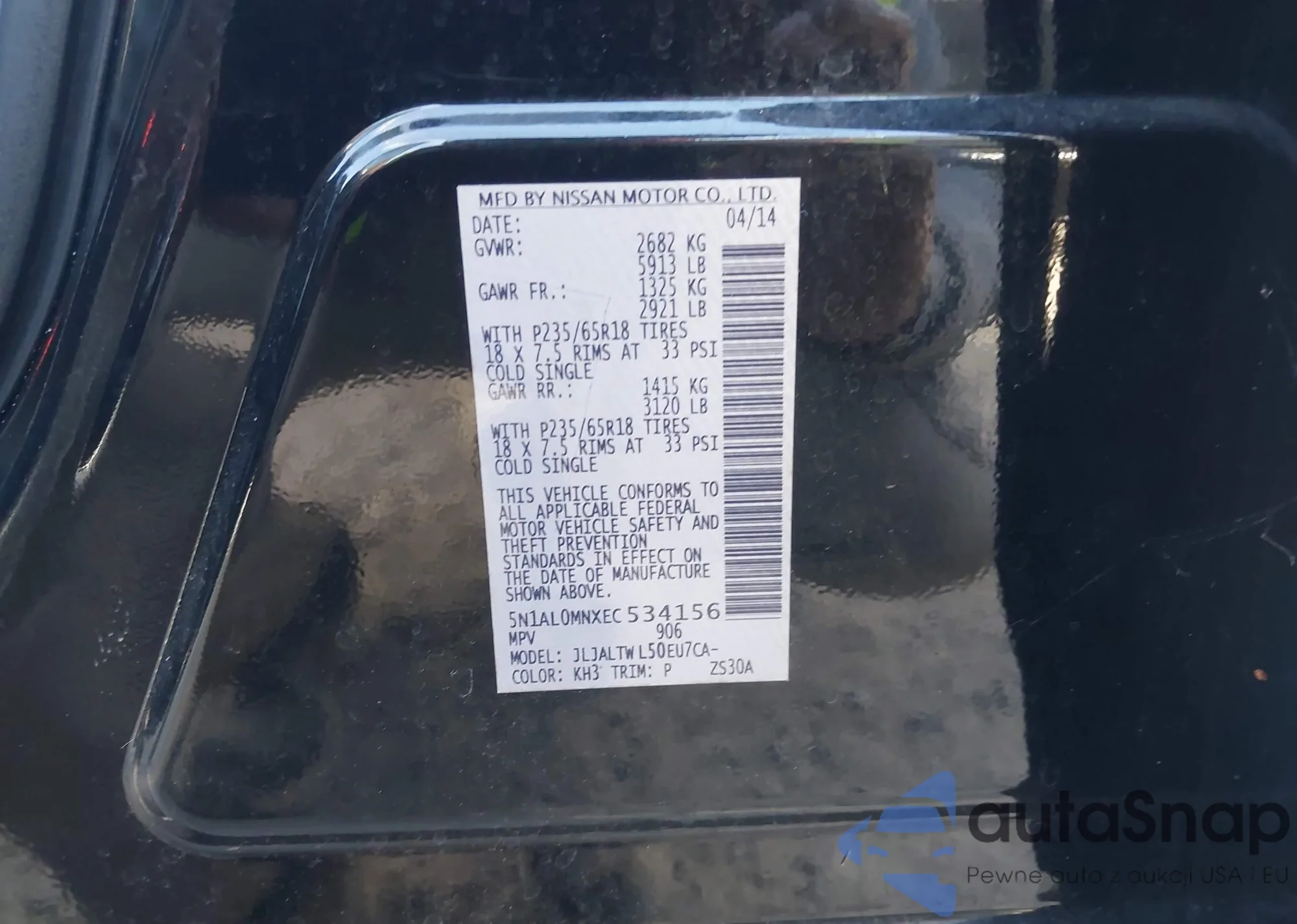 • VIN 5N1AL0MNXEC534156
