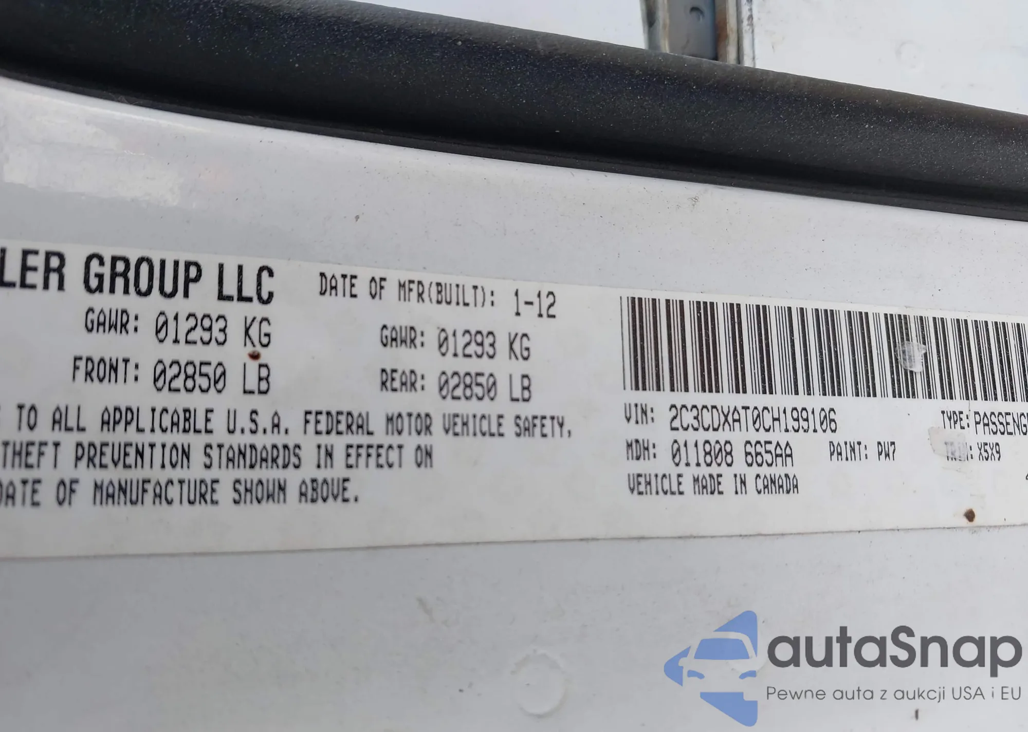 • VIN 2C3CDXAT0CH199106