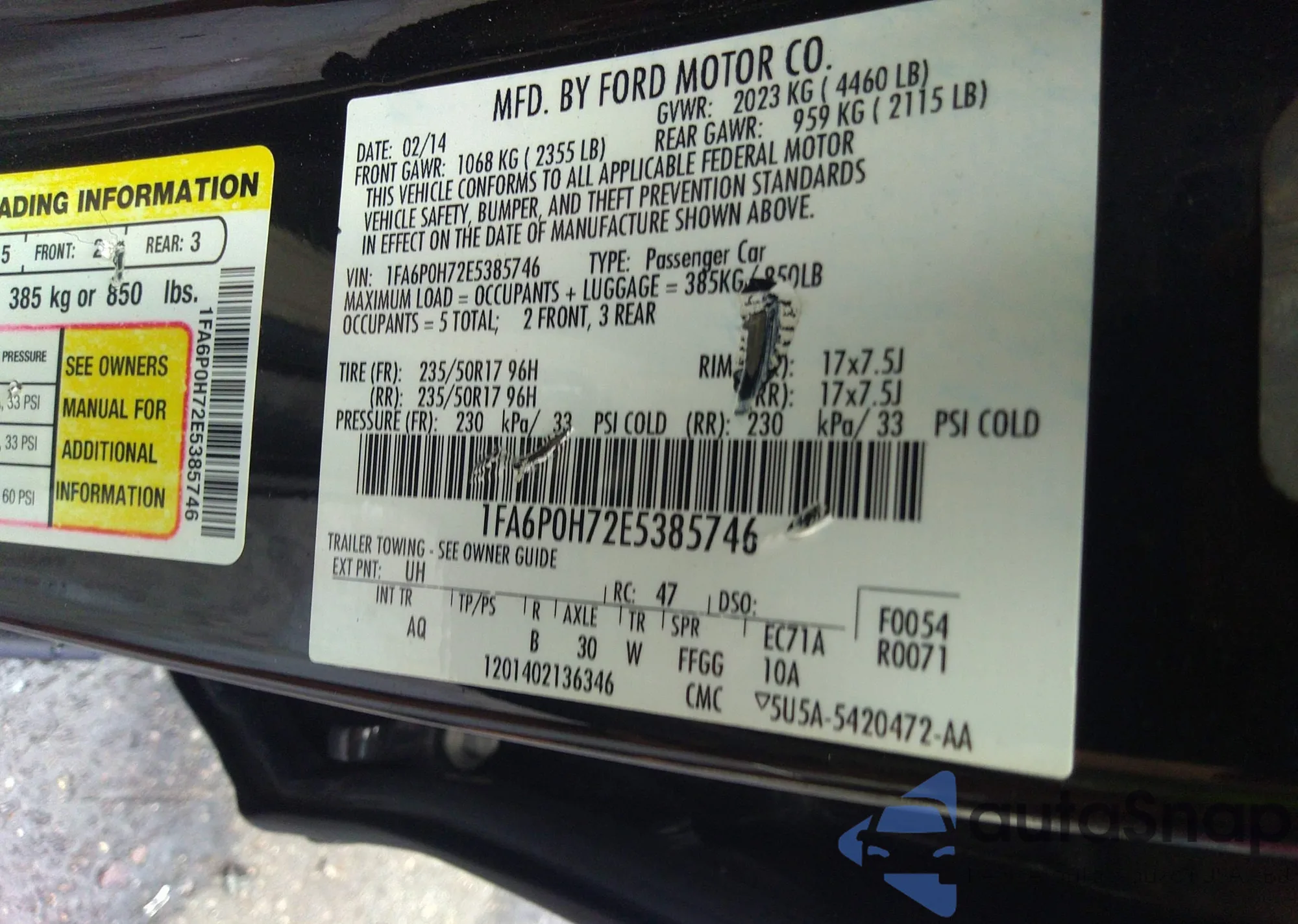 • VIN 1FA6P0H72E5385746