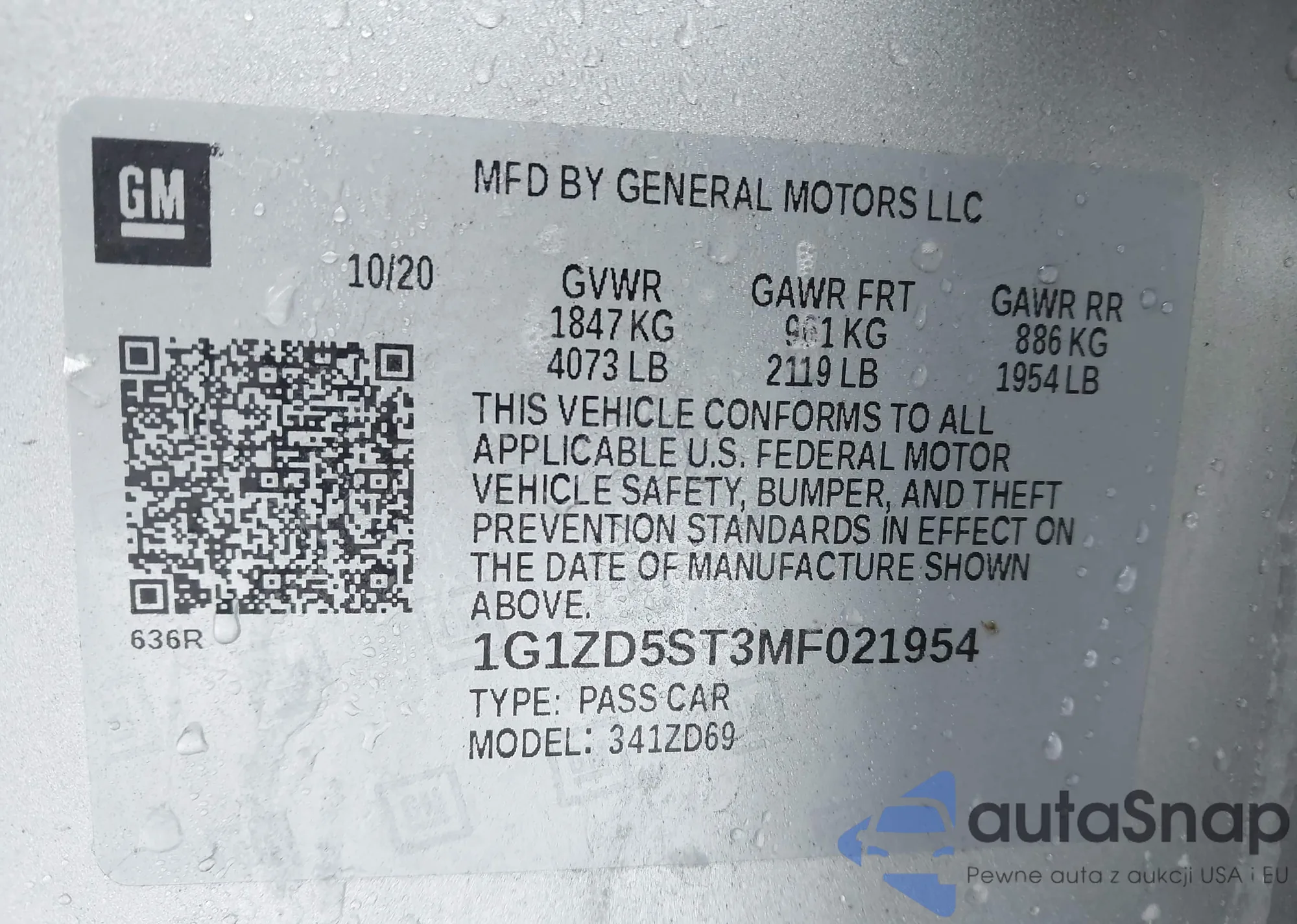 LOT: 41976068 VIN: SALYL2RX8JA726408