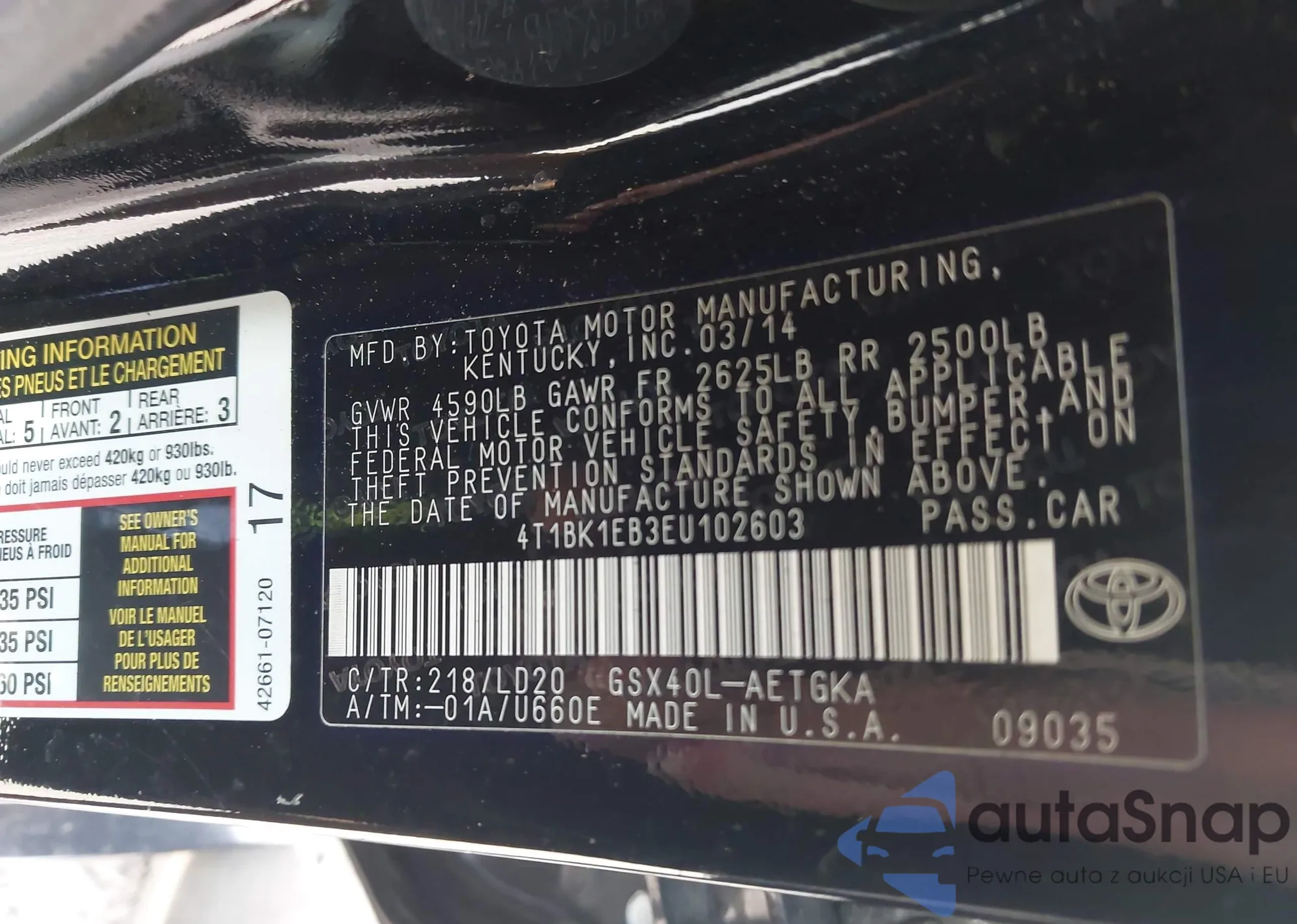 LOT: 41992147 VIN: 4T1BK1EB3EU102603