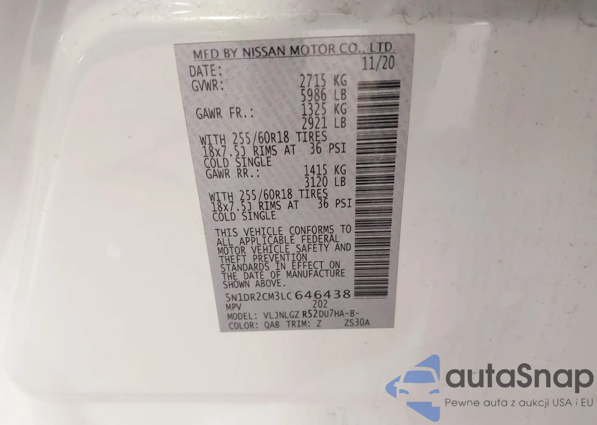 LOT: 41994025 VIN: 5N1DR2CM3LC646438