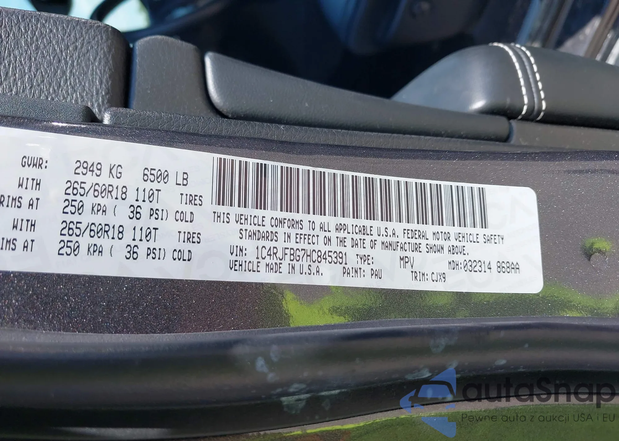 • VIN 1C4RJFBG7HC845391
