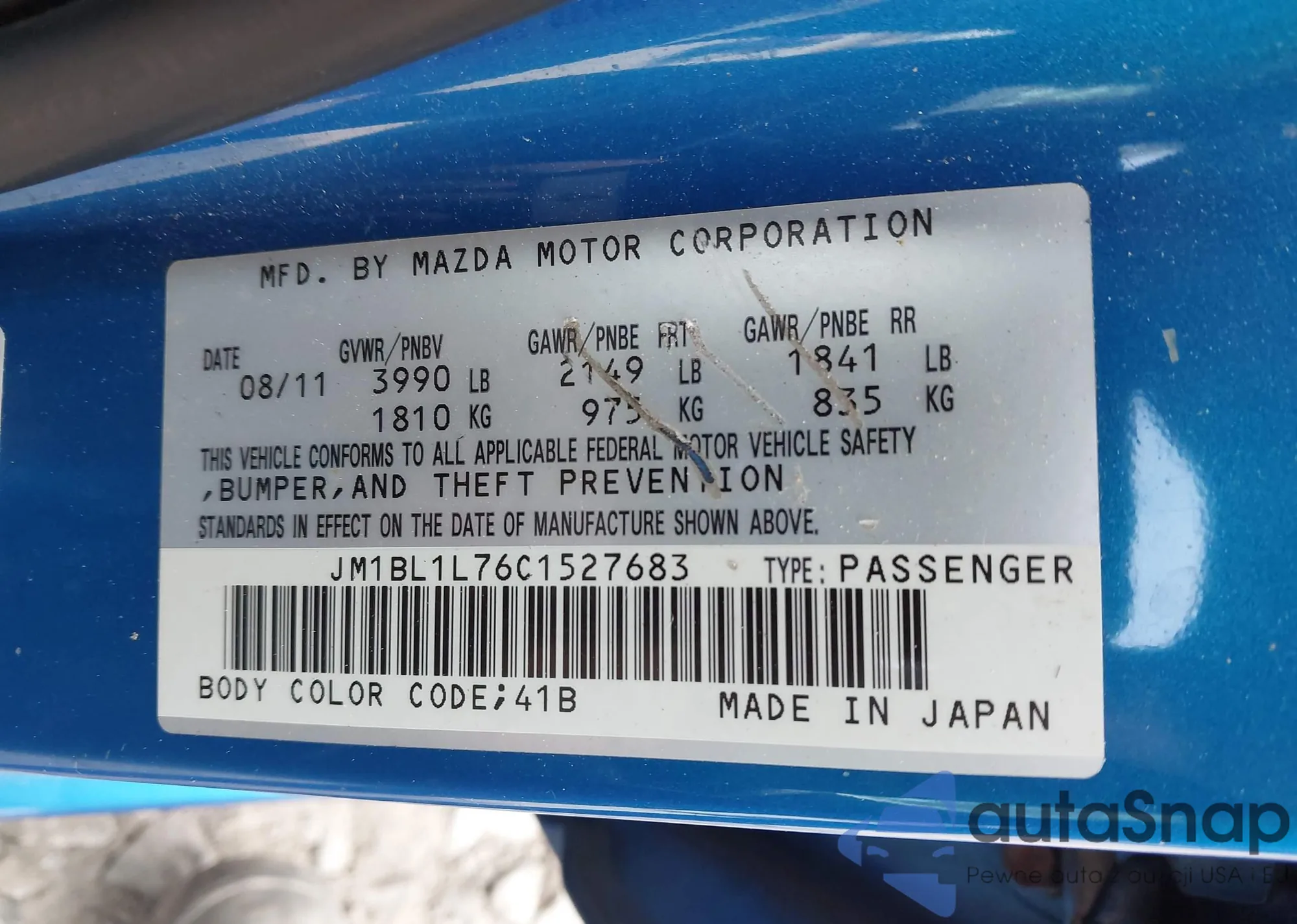 LOT: 42448953 VIN: JM1BL1L76C1527683