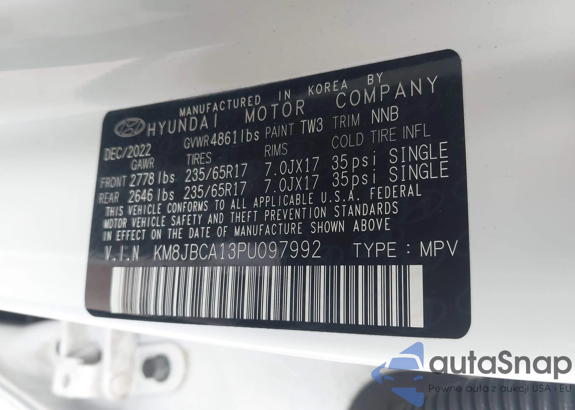 LOT: 43153942 VIN: KM8JBCA13PU097992