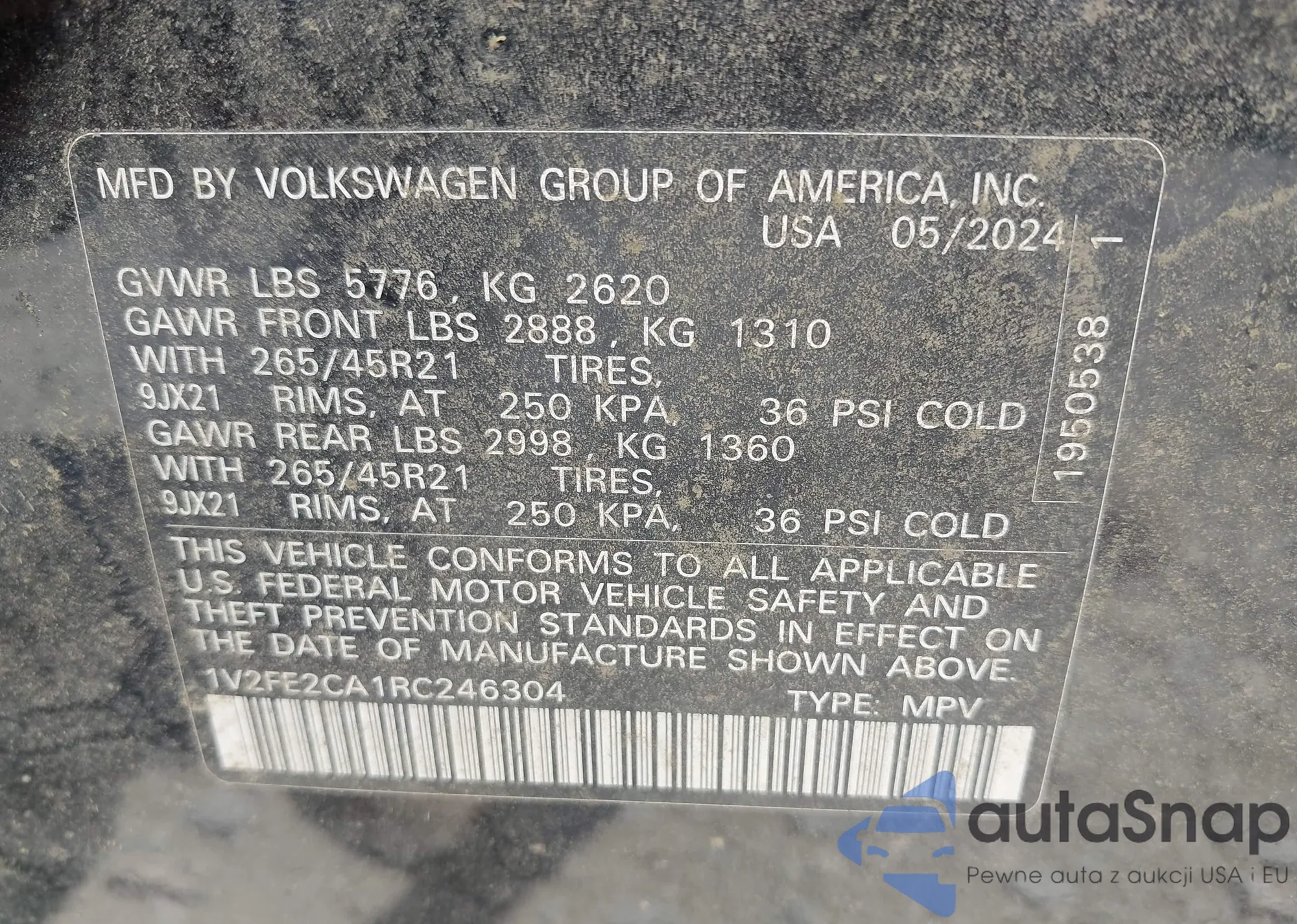 2024 Volkswagen Atlas Cross Sport 2.0T Sel Premium R-Line from USA, damaged, VIN 1V2FE2CA1RC246304