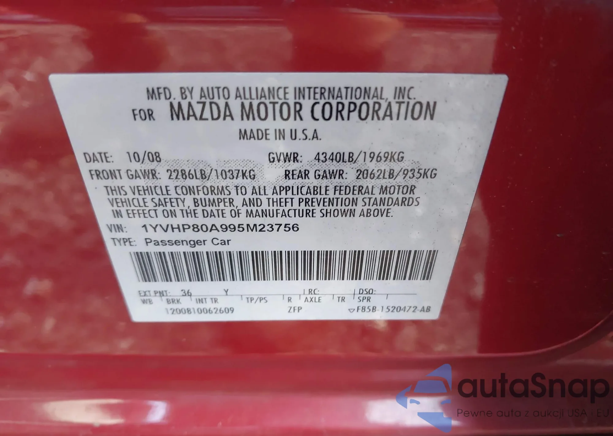 LOT: 42777058 VIN: 1YVHP80A995M23756