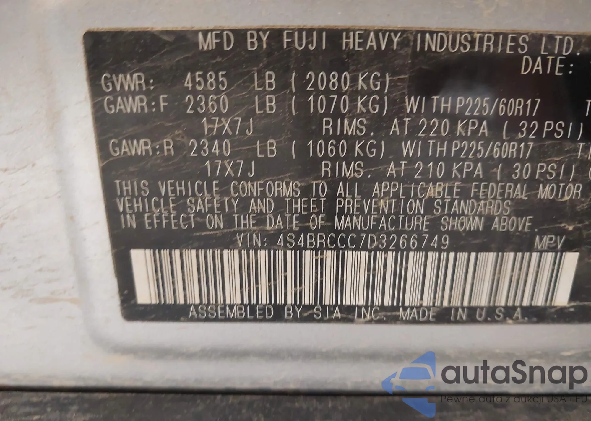 • VIN 4S4BRCCC7D3266749