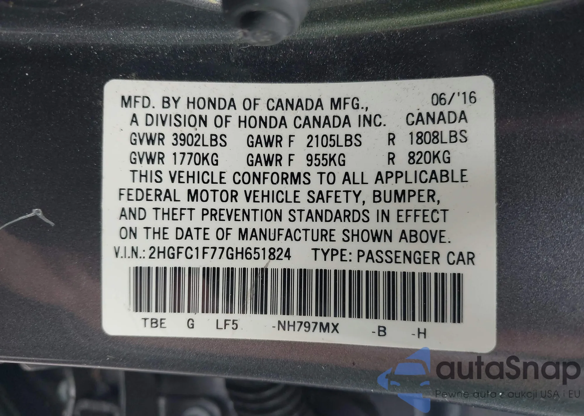 • VIN 2HGFC1F77GH651824