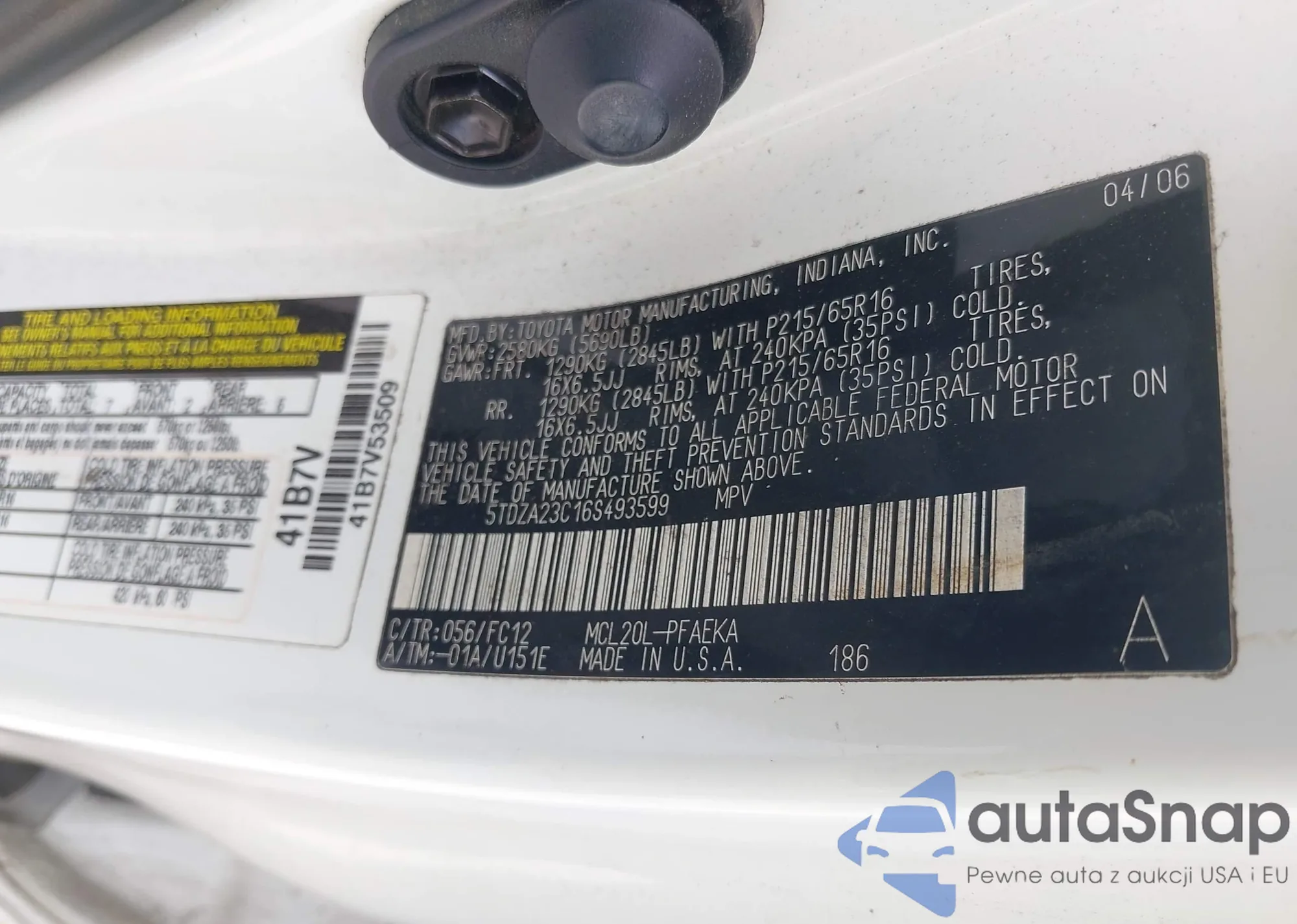 LOT: 43043803 VIN: WAUENCF56KA010036