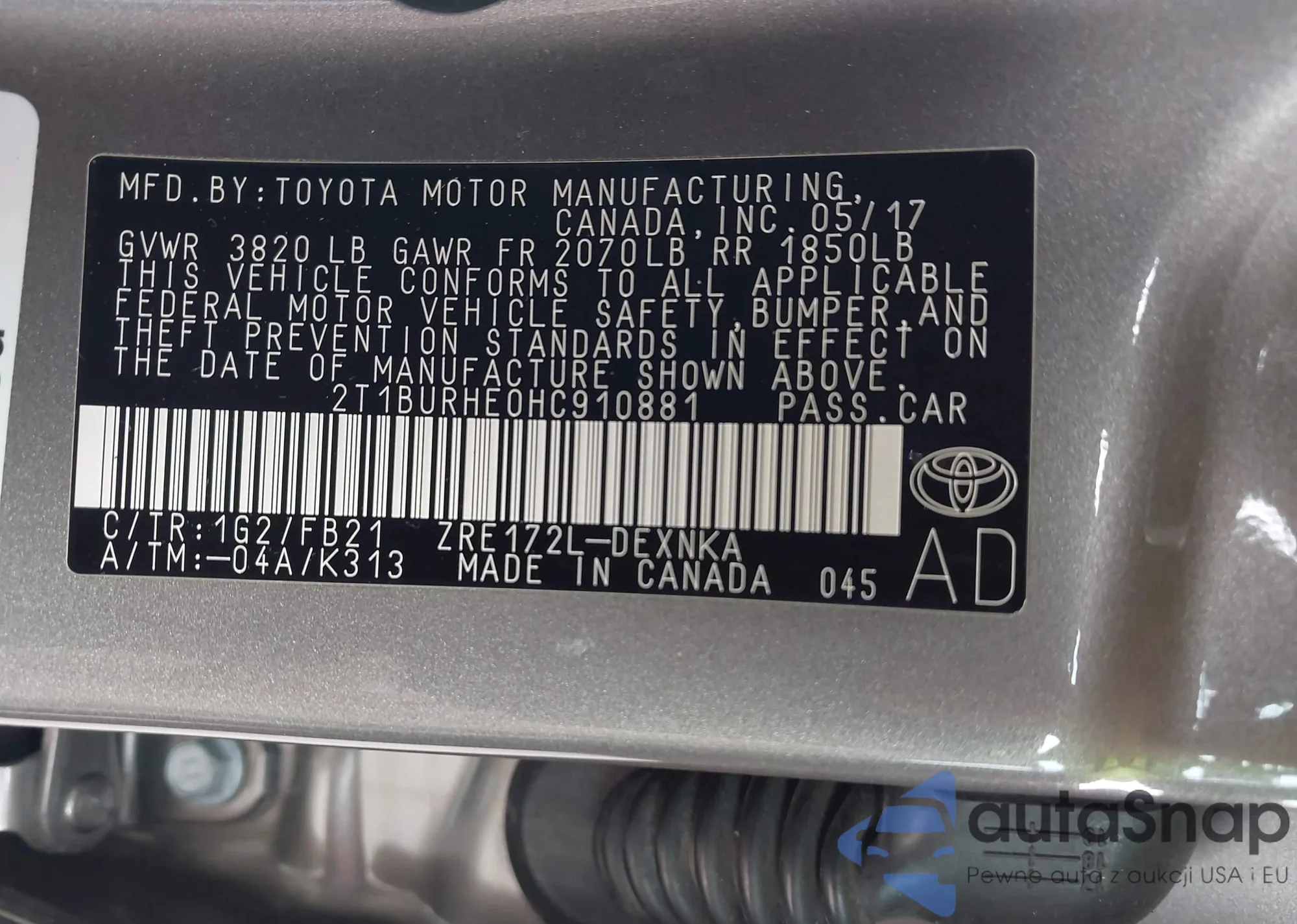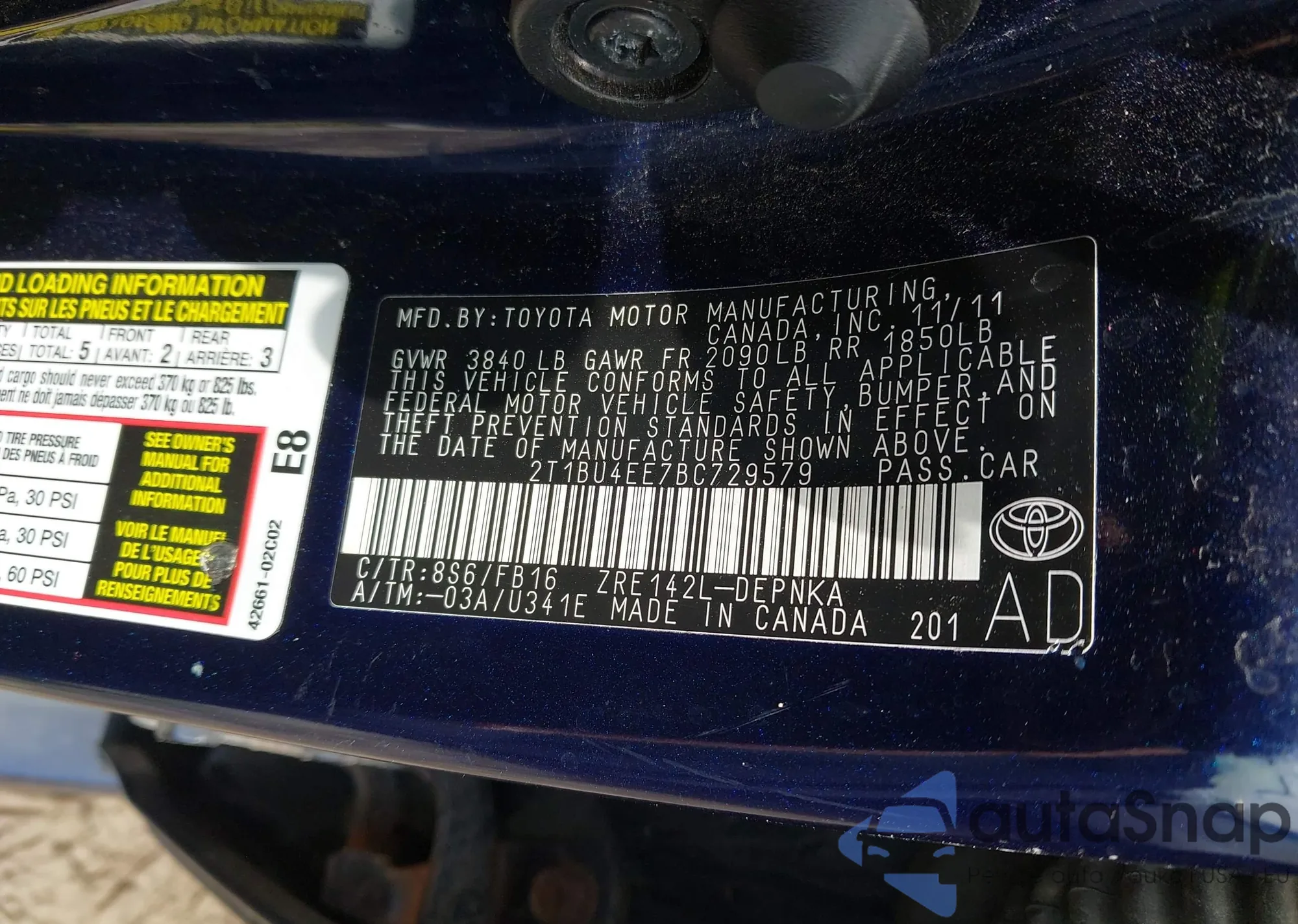 • VIN 2T1BU4EE7BC729579