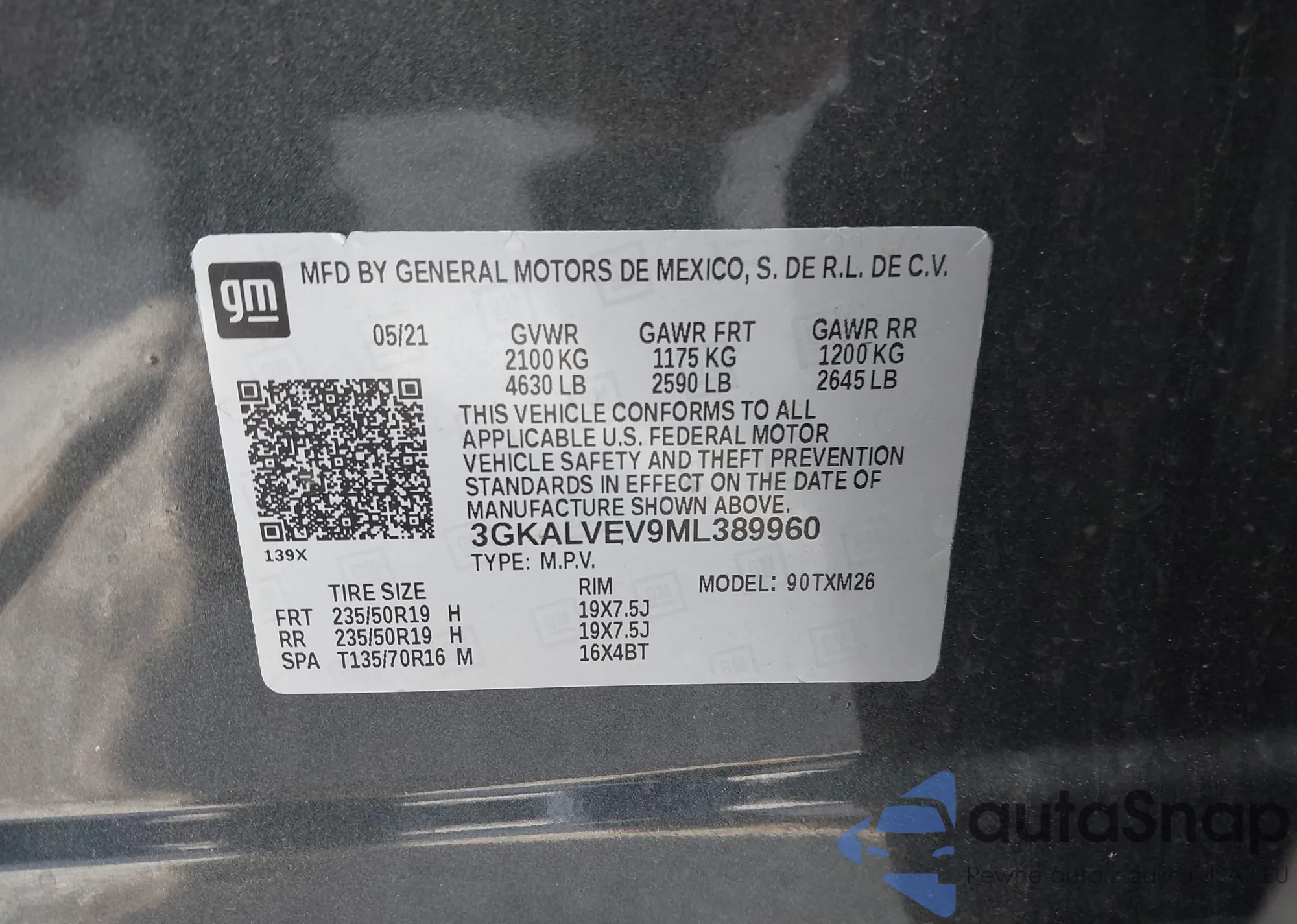 • VIN 3GKALVEV9ML389960