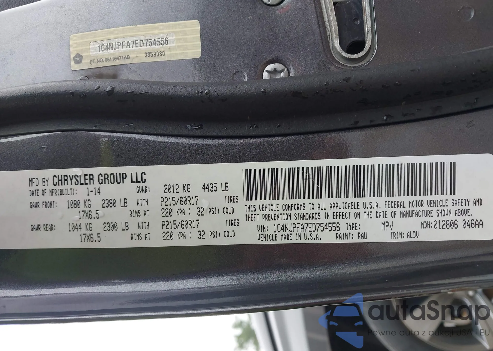 LOT: 43039953 VIN: 1C4NJPFA7ED754556