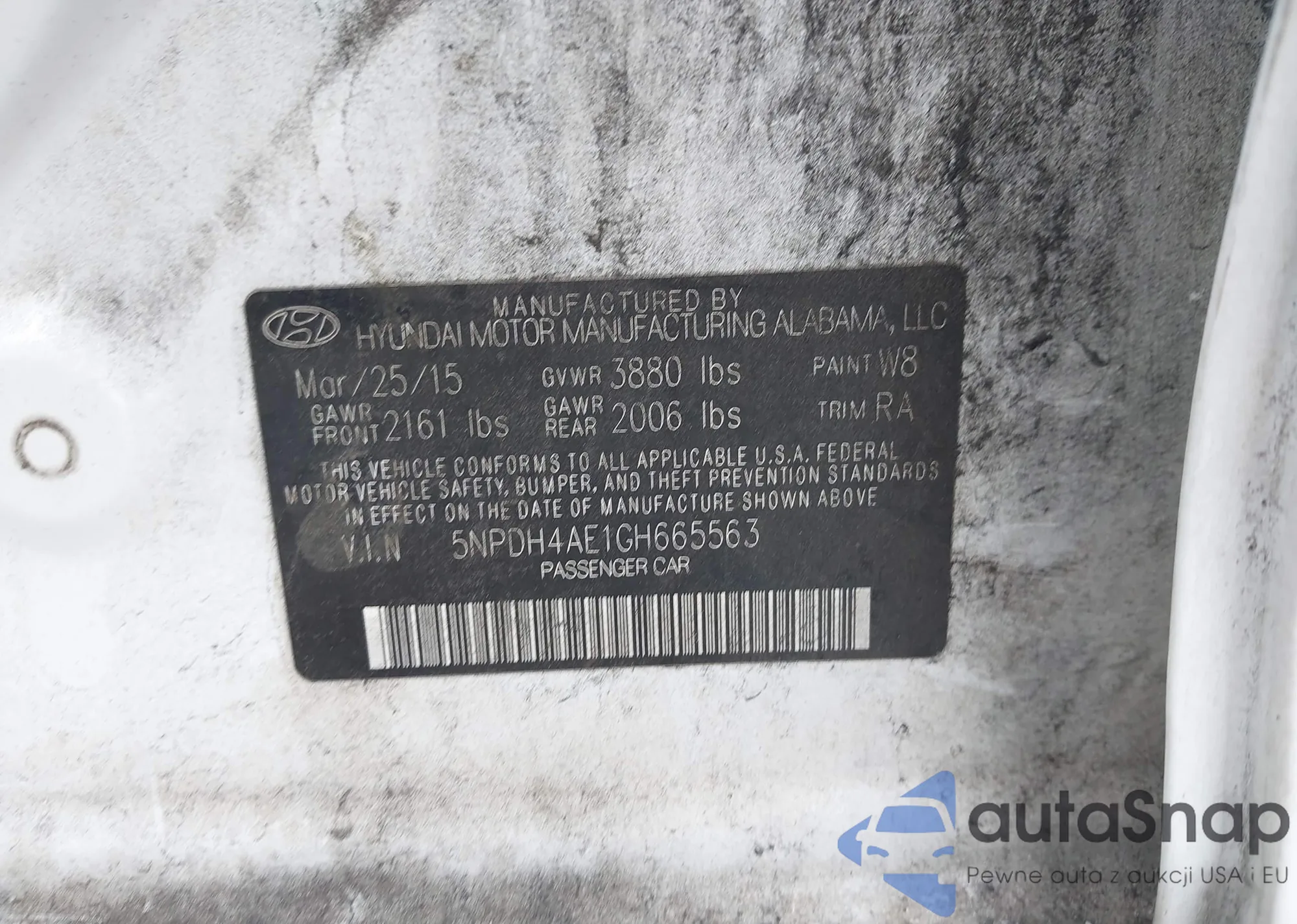 LOT: 43059587 VIN: 5NPDH4AE1GH665563