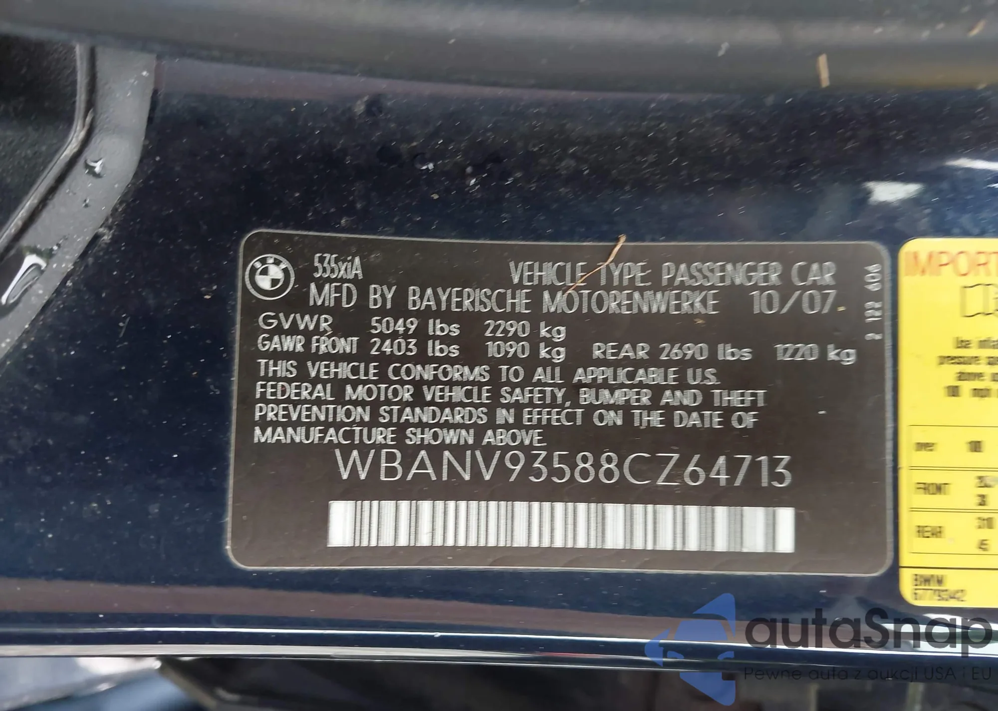 • VIN WBANV93588CZ64713