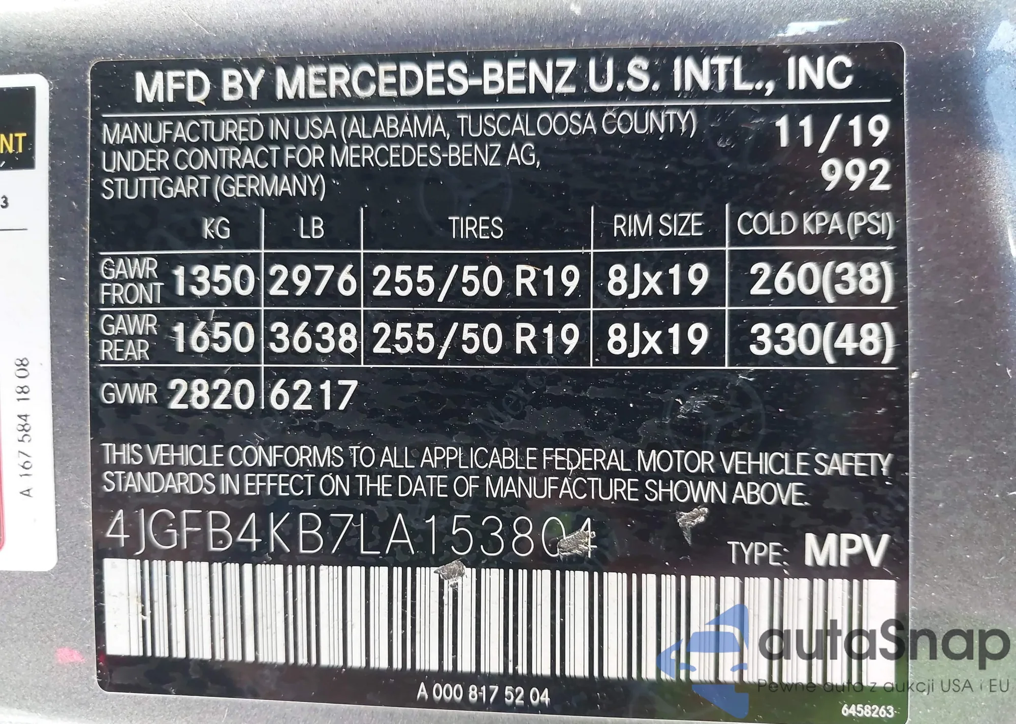 • VIN 4JGFB4KB7LA153804
