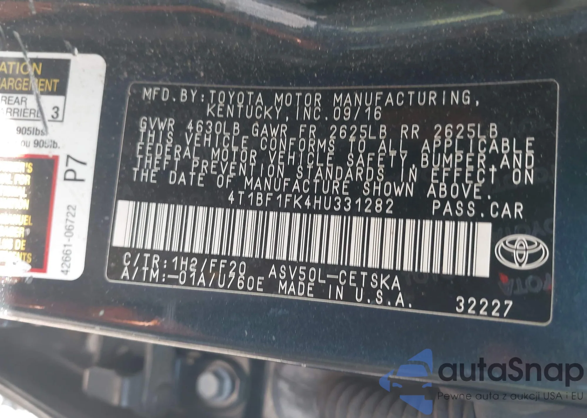 • VIN 4T1BF1FK4HU331282