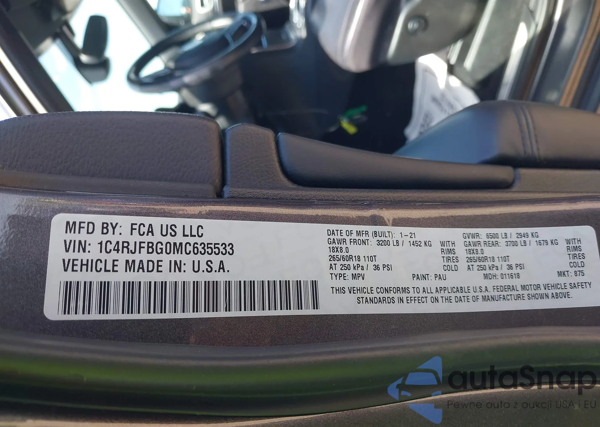 • VIN 1C4RJFBG0MC635533