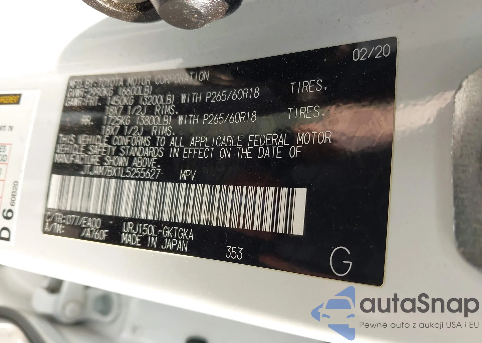 LOT: 43065418 VIN: 4JGFB4KB7LA153804