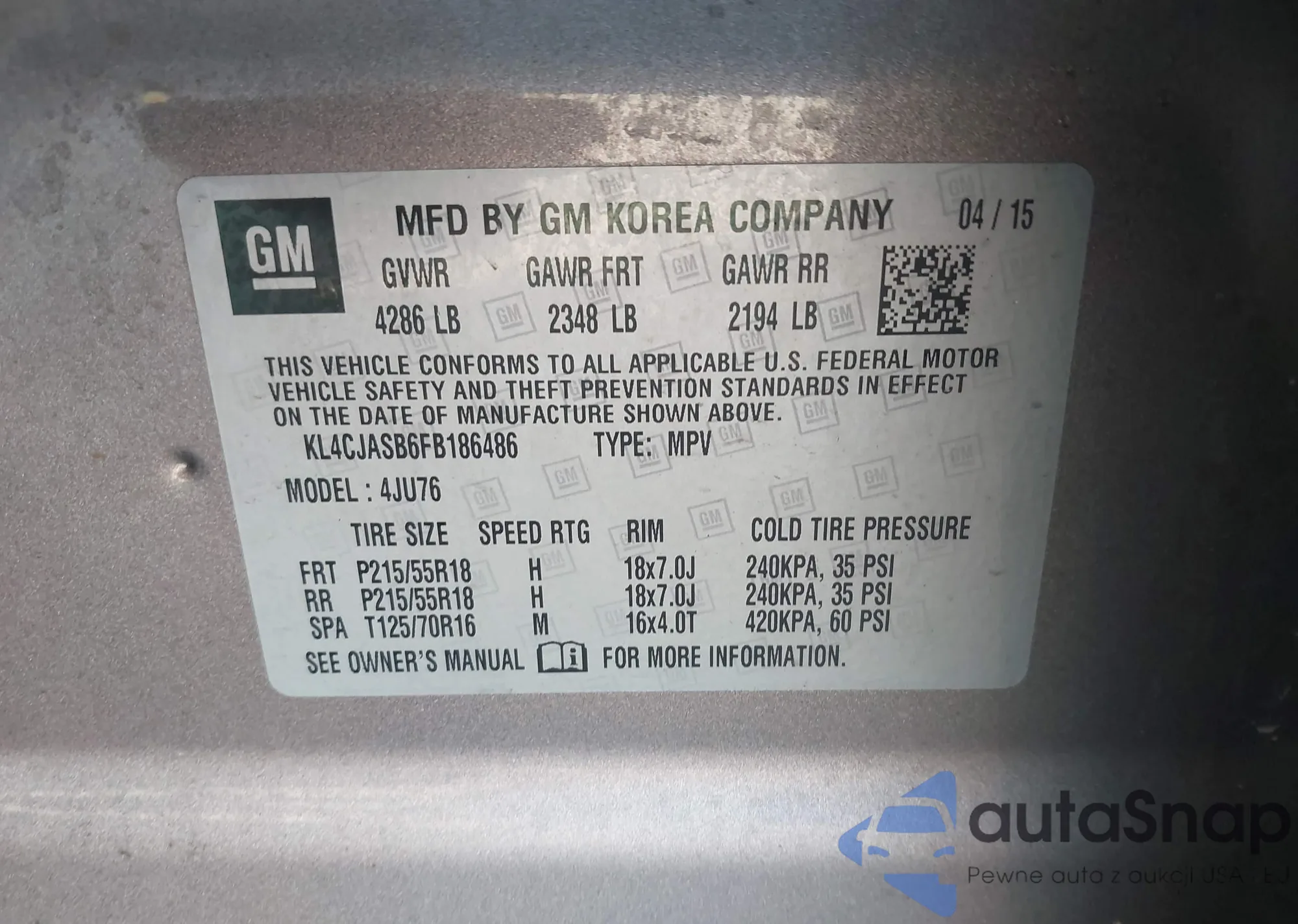 • VIN KL4CJASB6FB186486