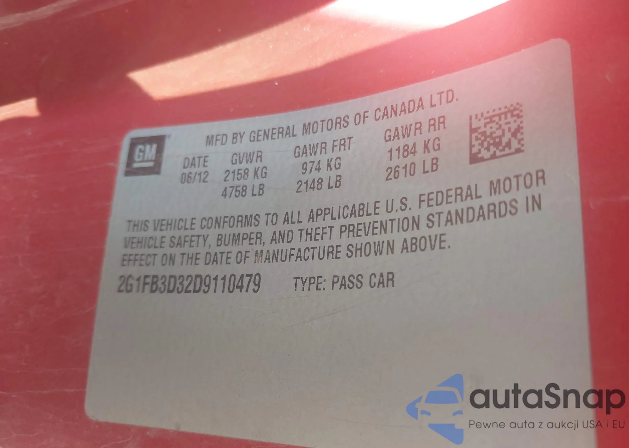LOT: 43188426 VIN: 2G1FB3D32D9110479