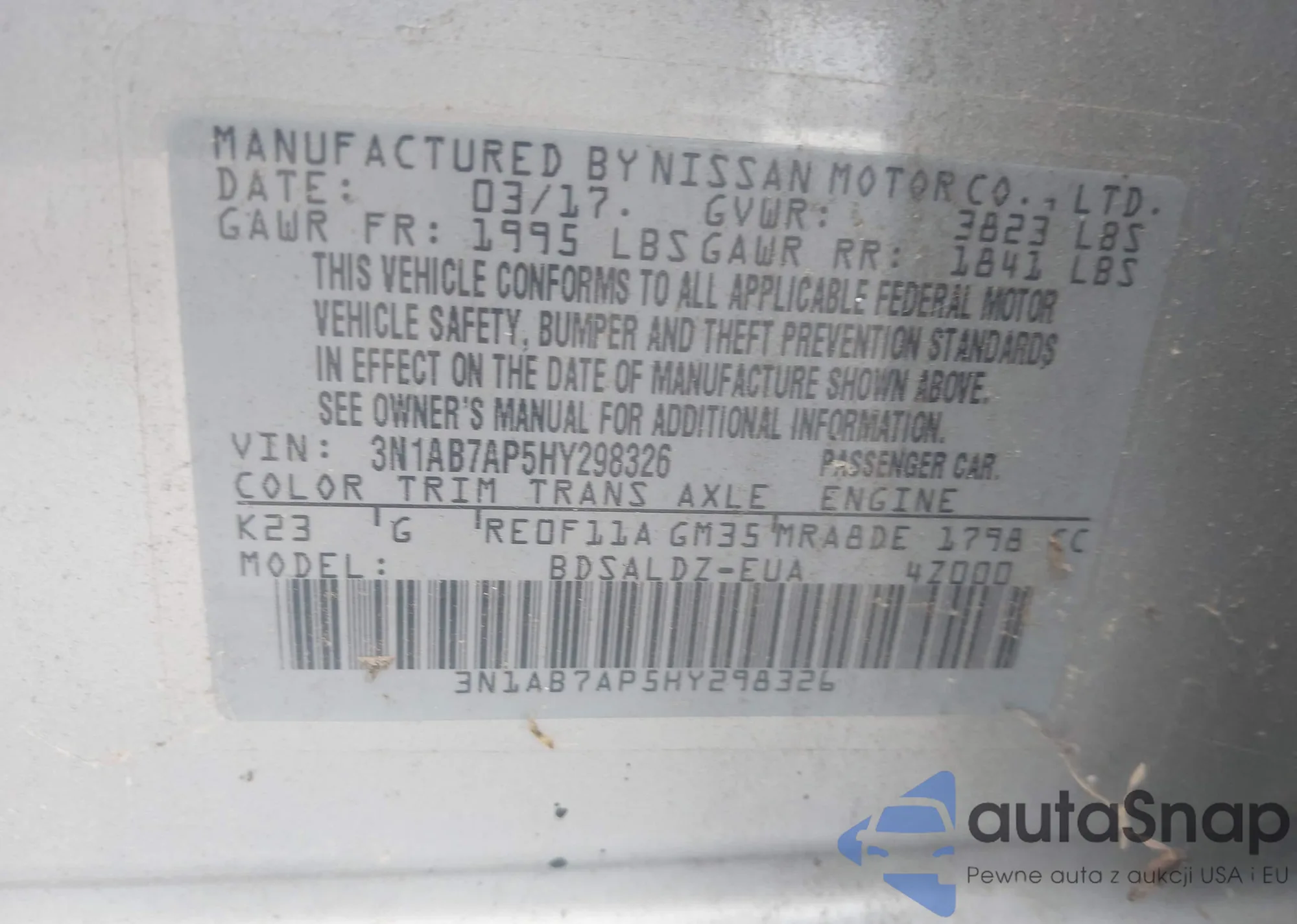 LOT: 43213327 VIN: 4S3BNAE60G3007259