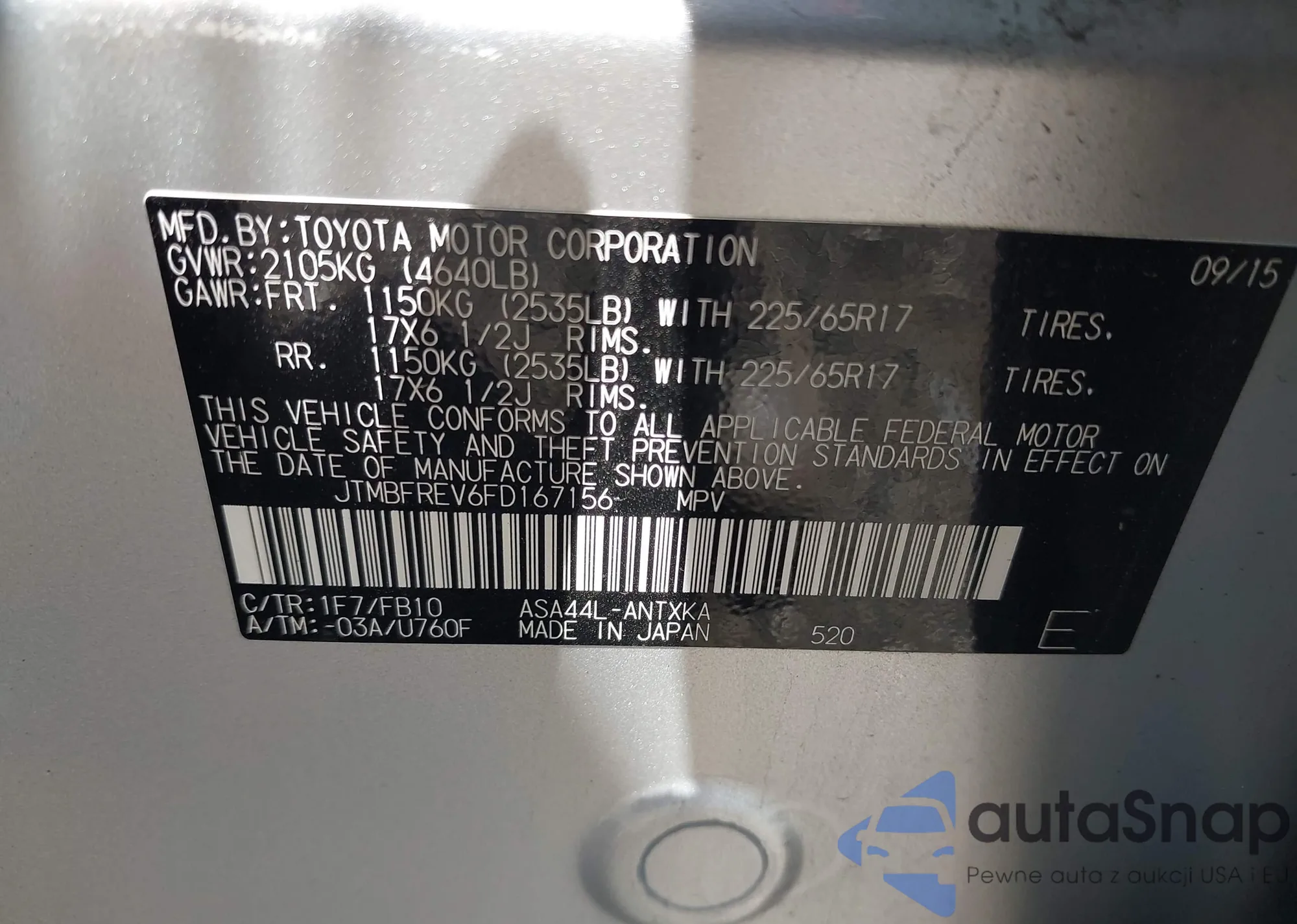 LOT: 42981913 VIN: 4T1BF3EKXAU066211