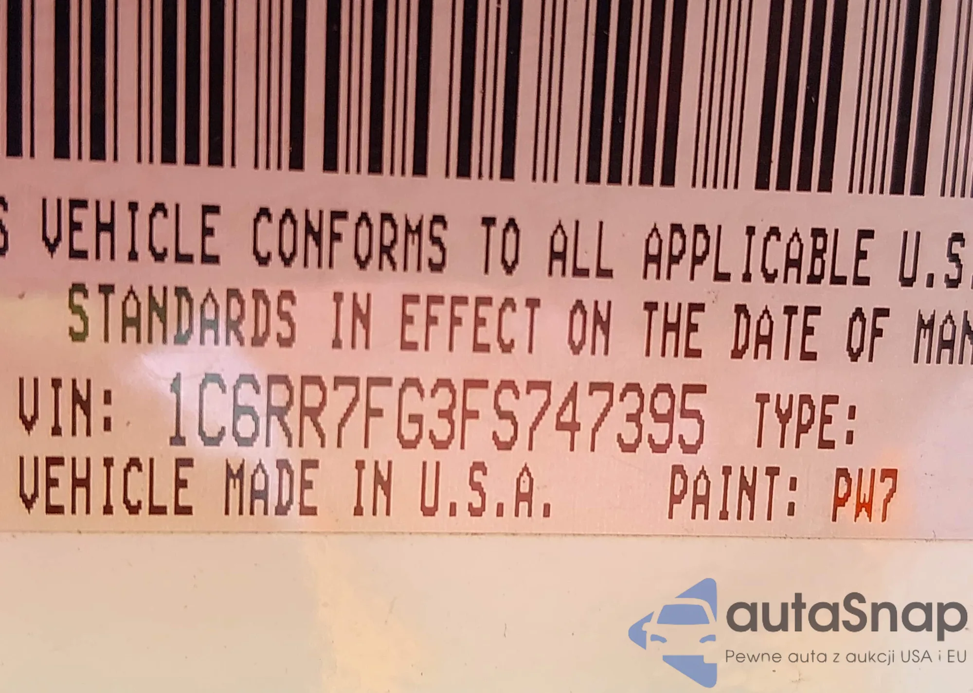 • VIN 1C6RR7FG3FS747395