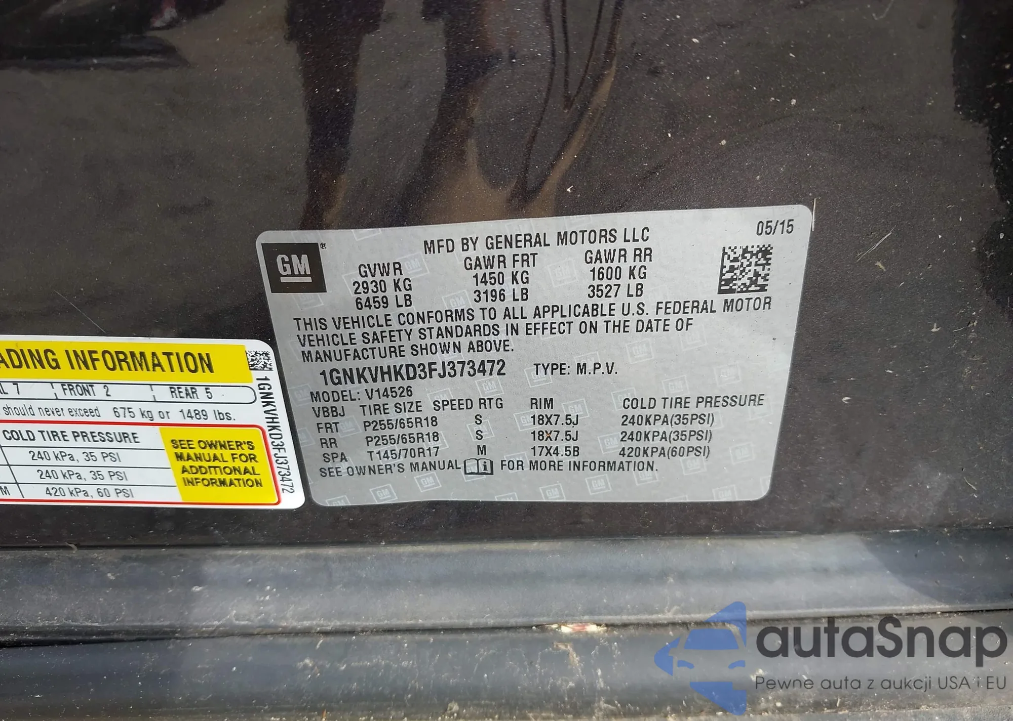 • VIN 5GAKRCKD3EJ363945