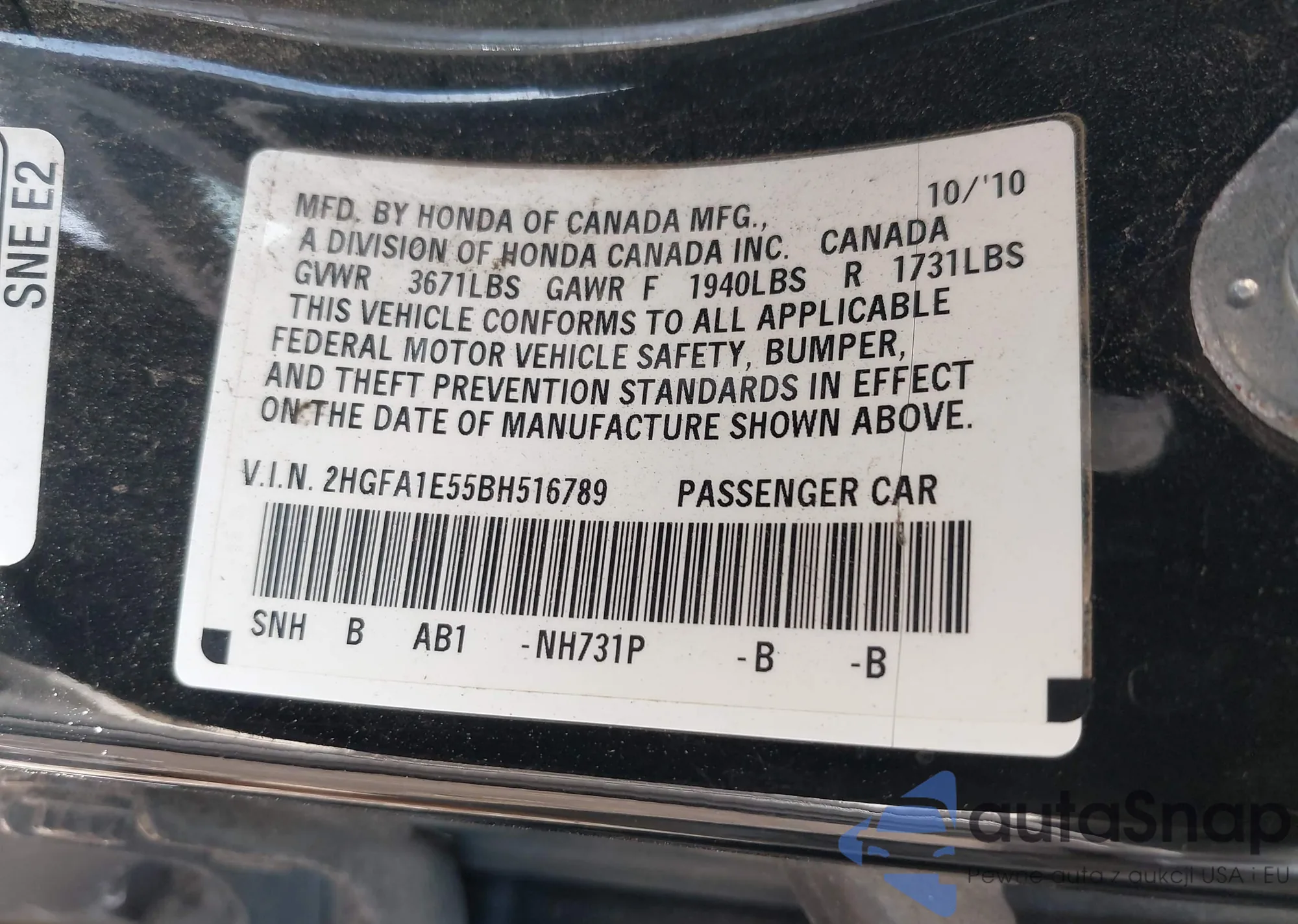 • VIN 2HGFA1E55BH516789