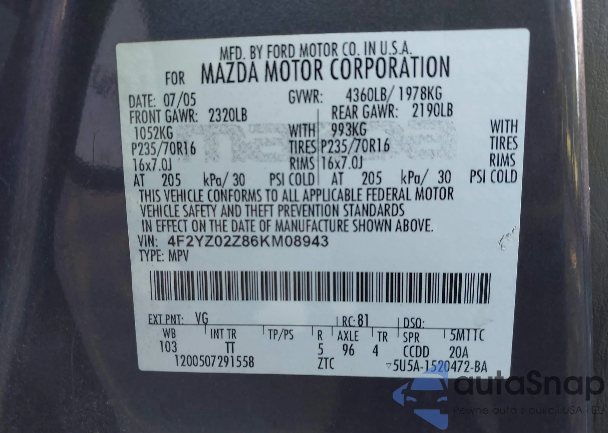 LOT: 43110514 VIN: 5N1ED28Y13C695409