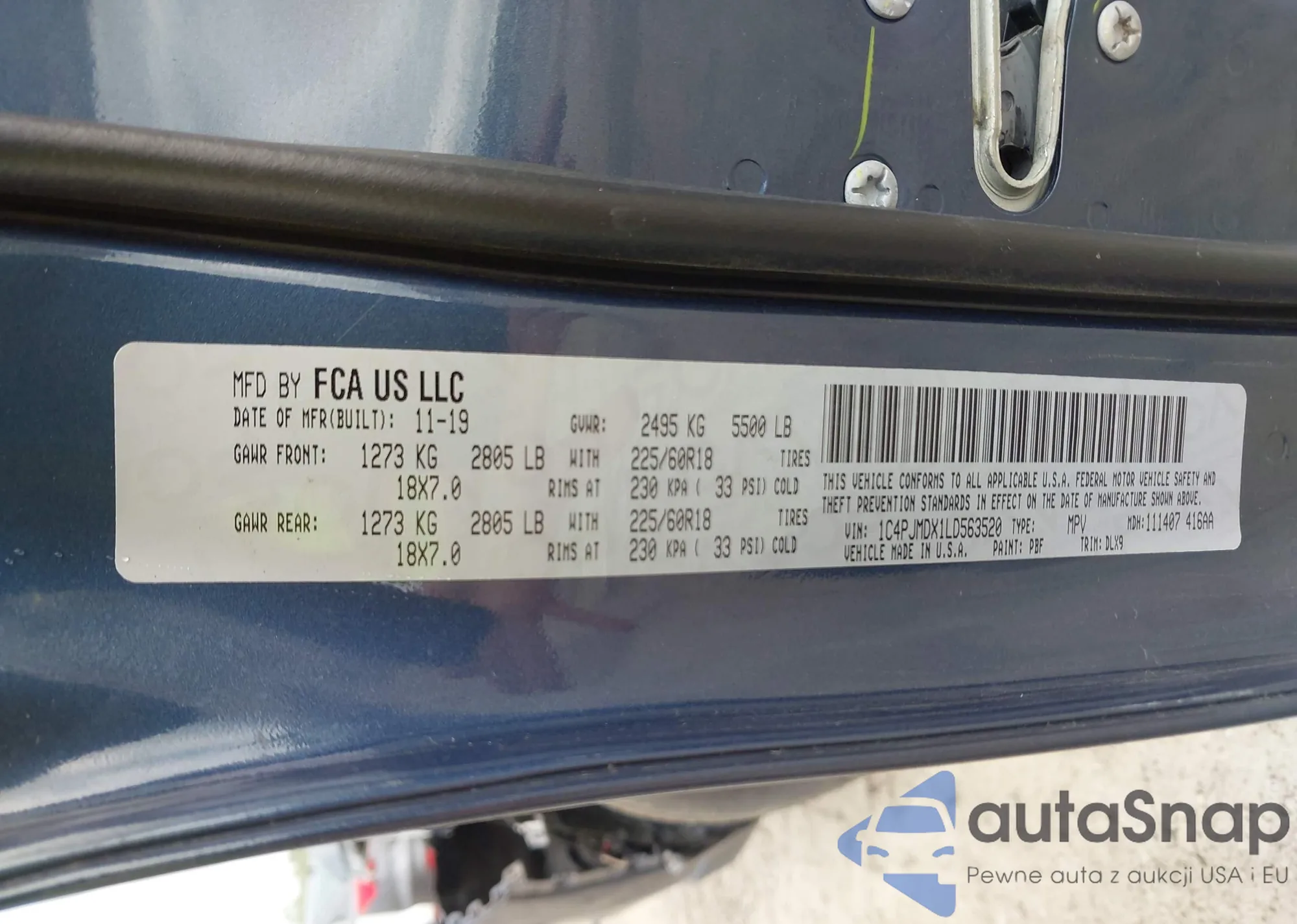 • VIN 1C4PJMDX1LD563520