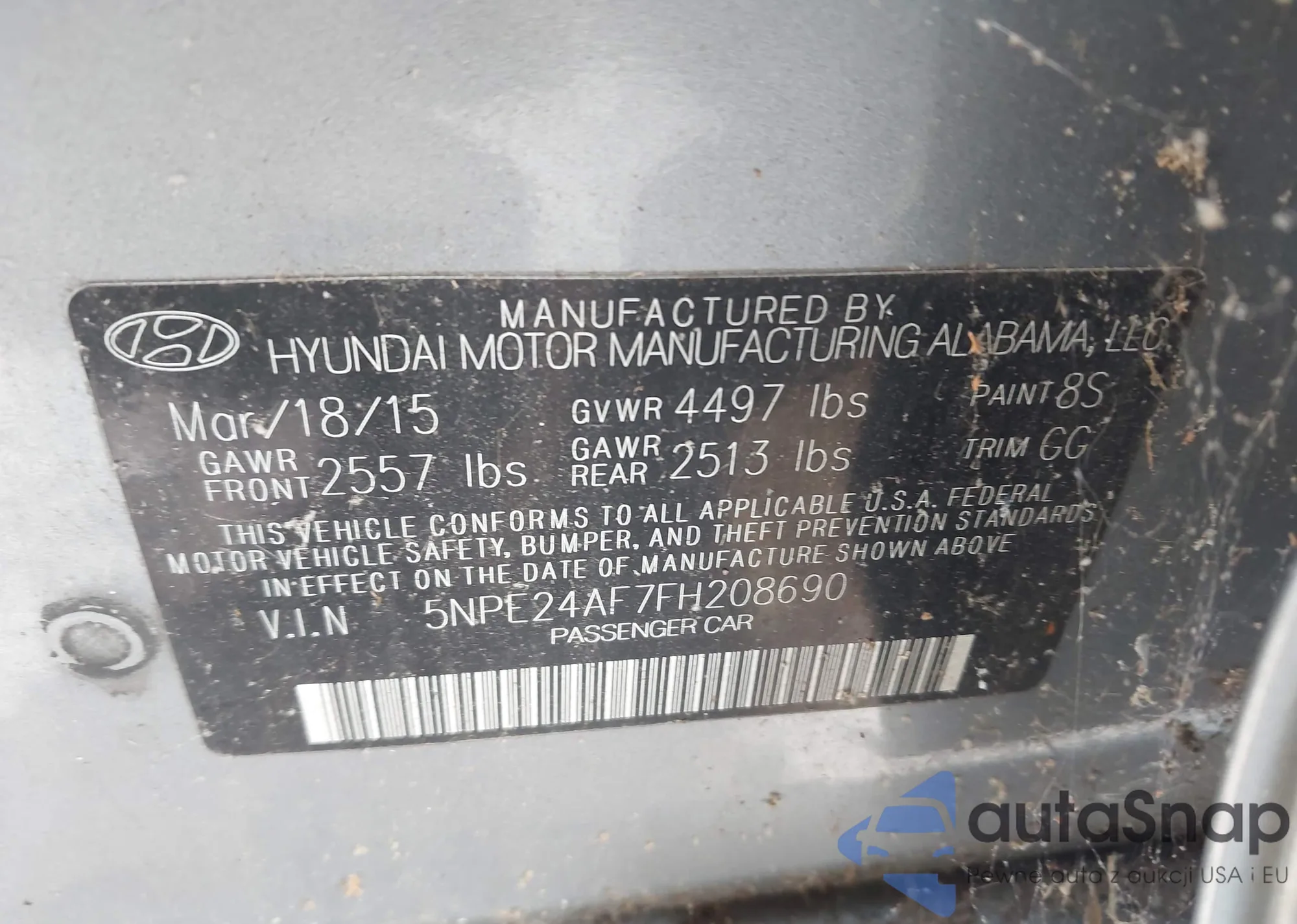 • VIN 5NPE24AF7FH208690
