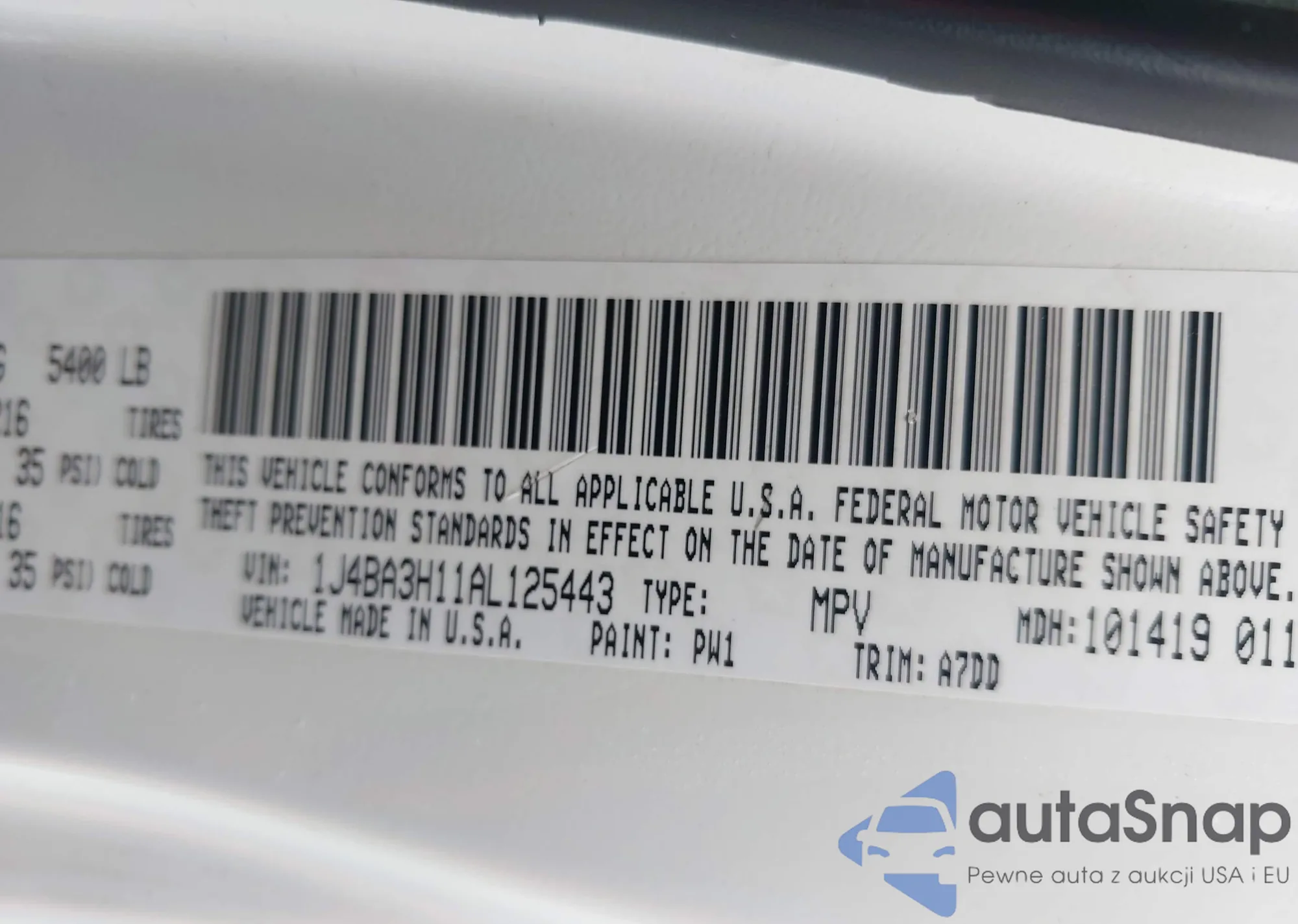 • VIN 1J4BA3H11AL125443