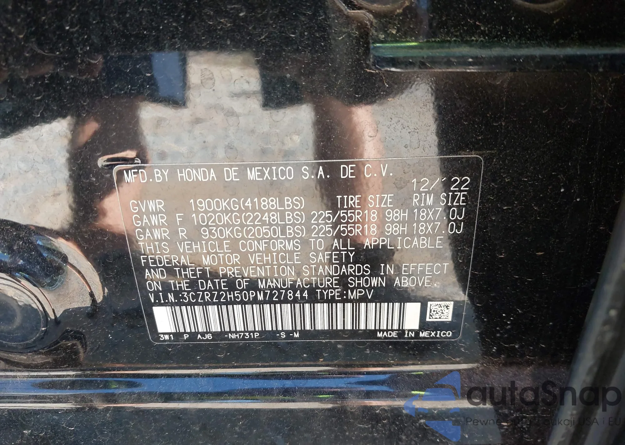 • VIN 3CZRZ2H50PM727844