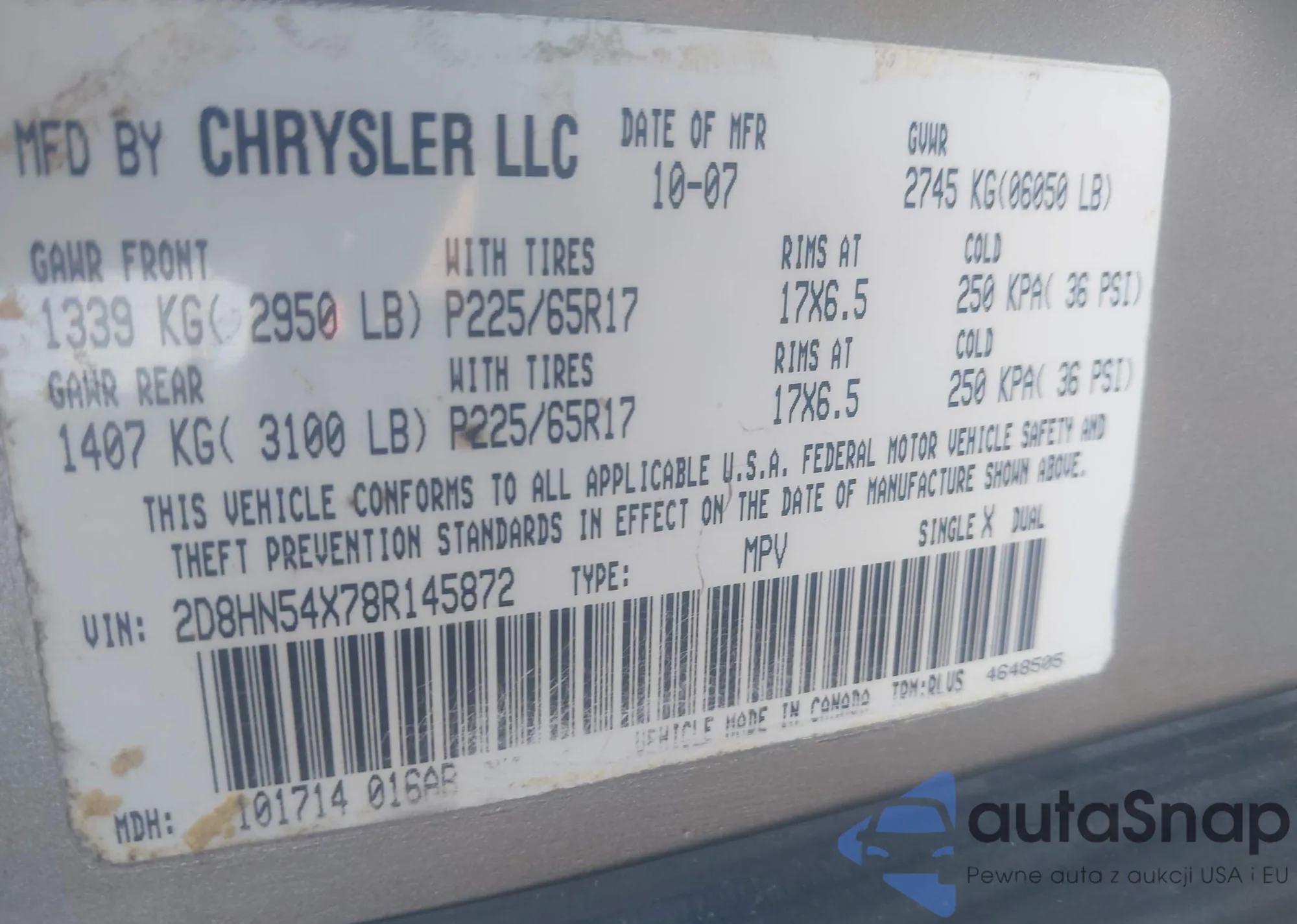 • VIN 2D8HN54X78R145872