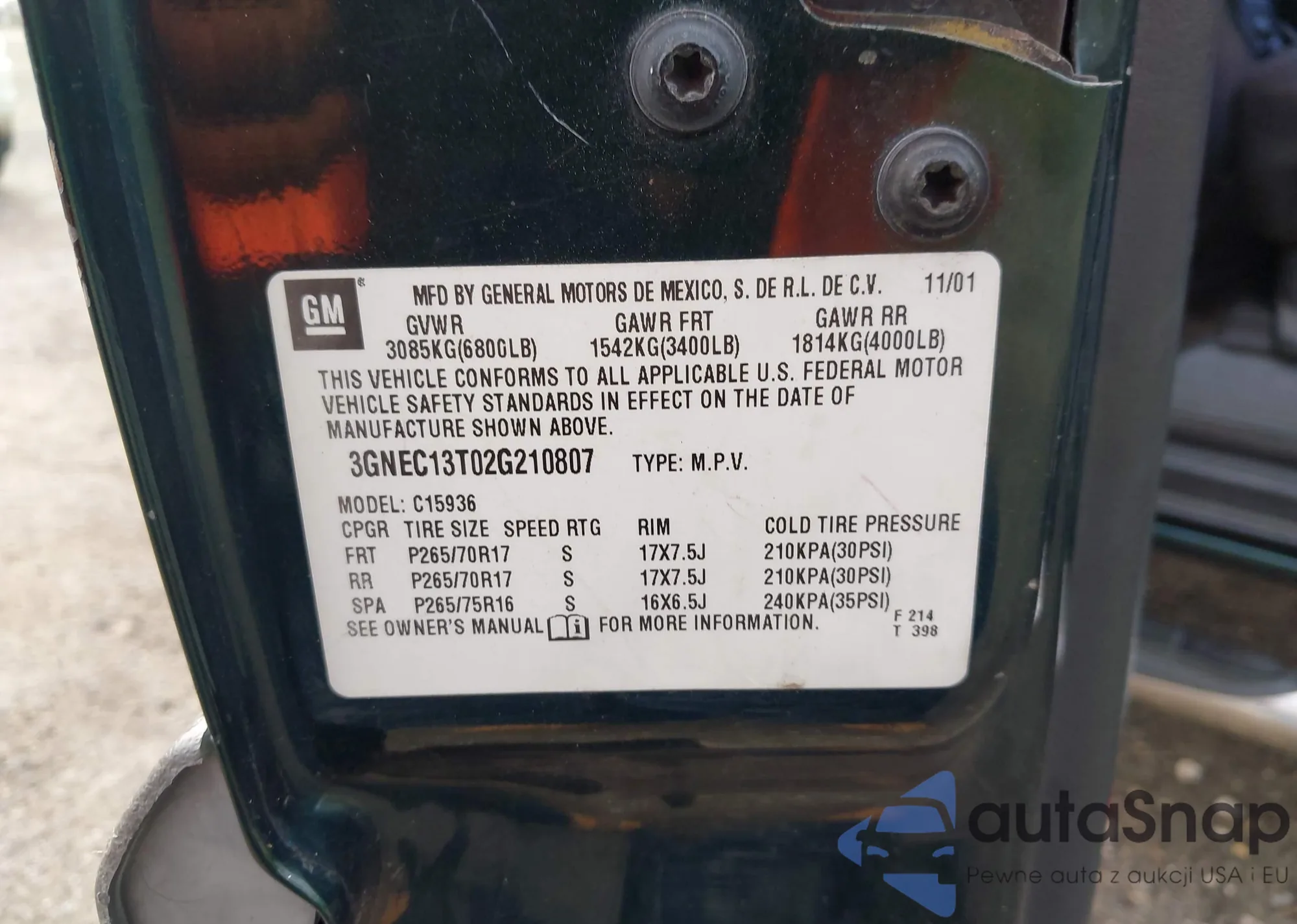 • VIN 5GAEVAKW1LJ325285