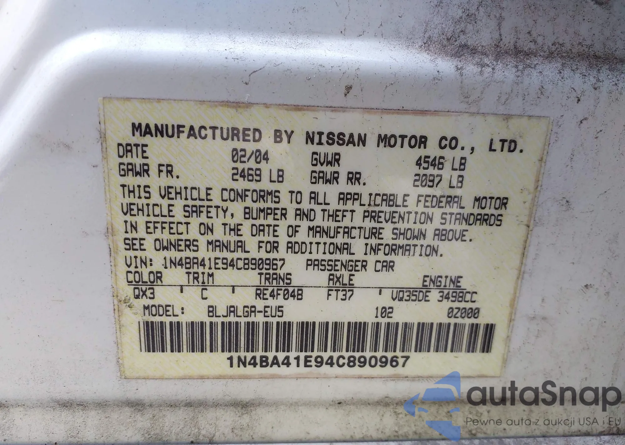 LOT: 42782849 VIN: 1N4BA41E94C890967