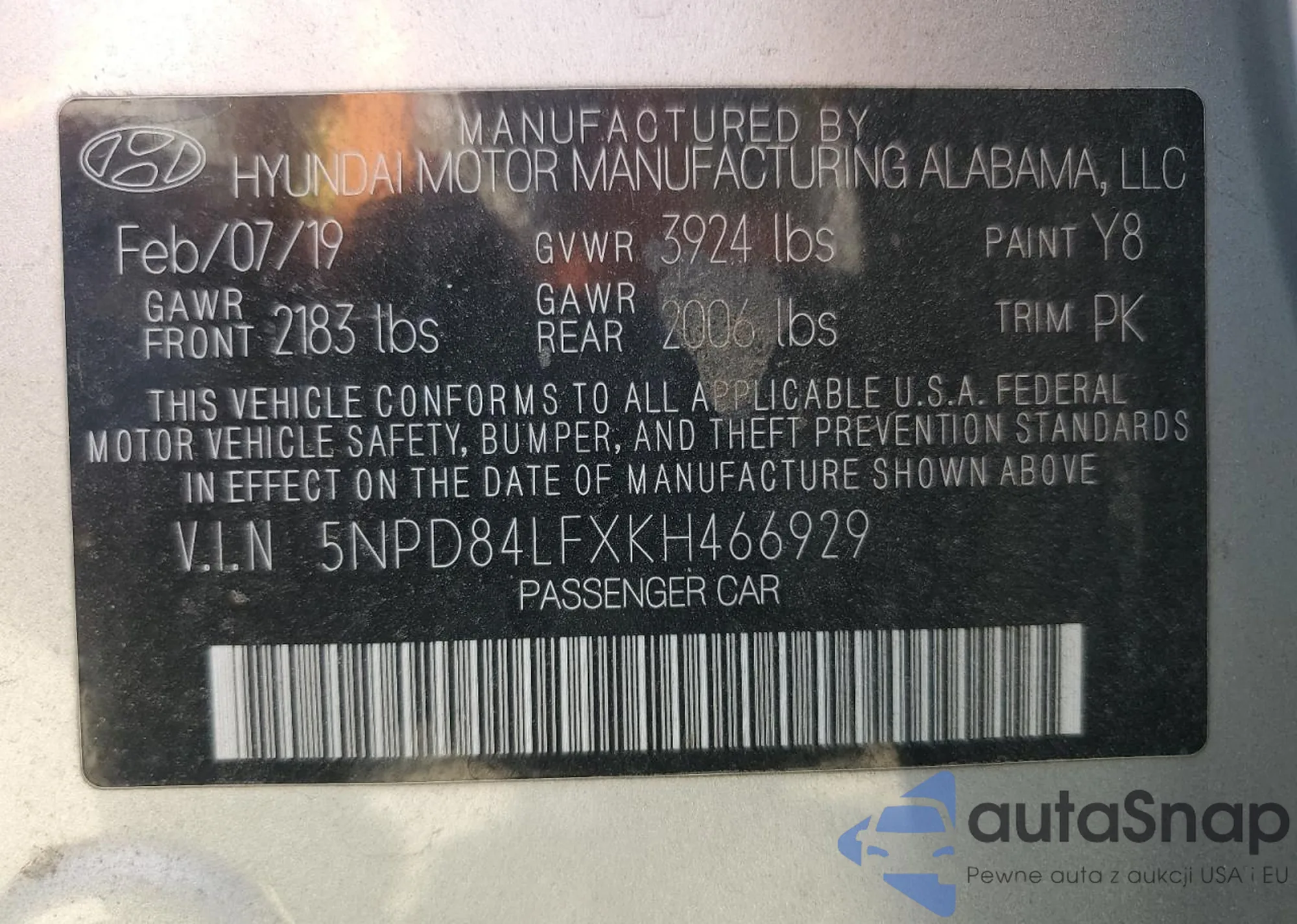 • VIN 5NPD84LFXKH466929