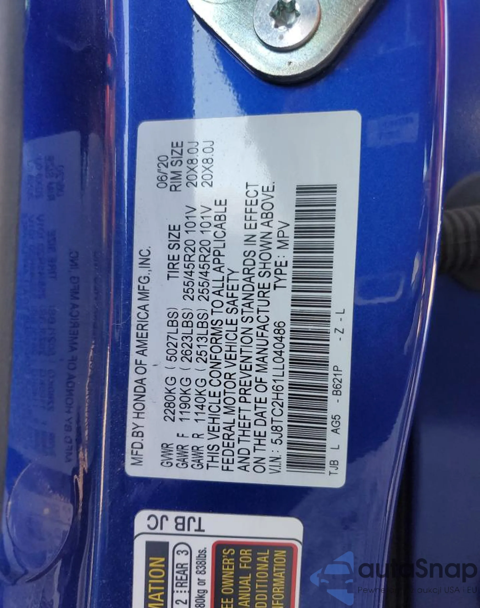 • VIN 5J8TC2H61LL040486