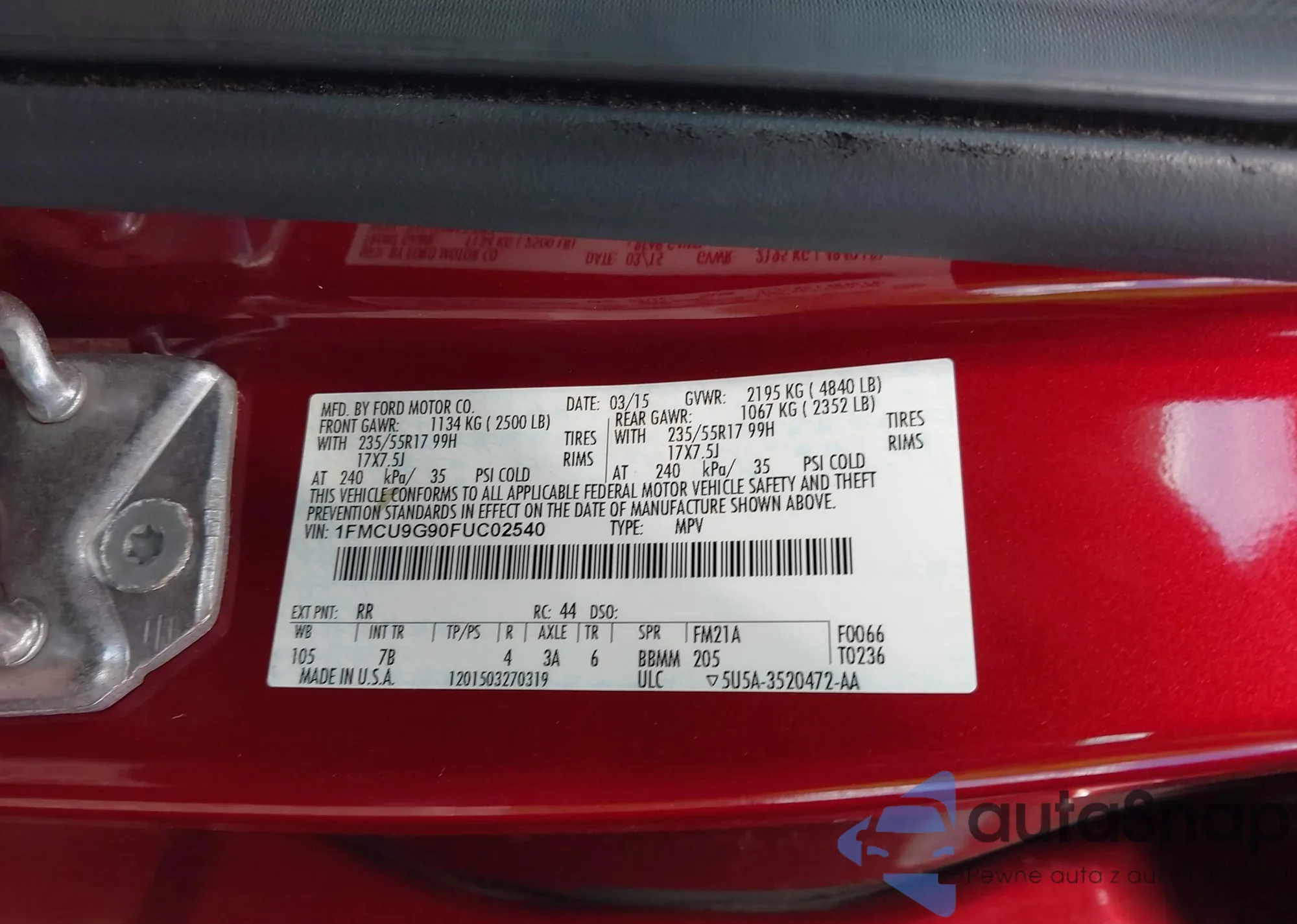 • VIN 1FMCU9G90FUC02540