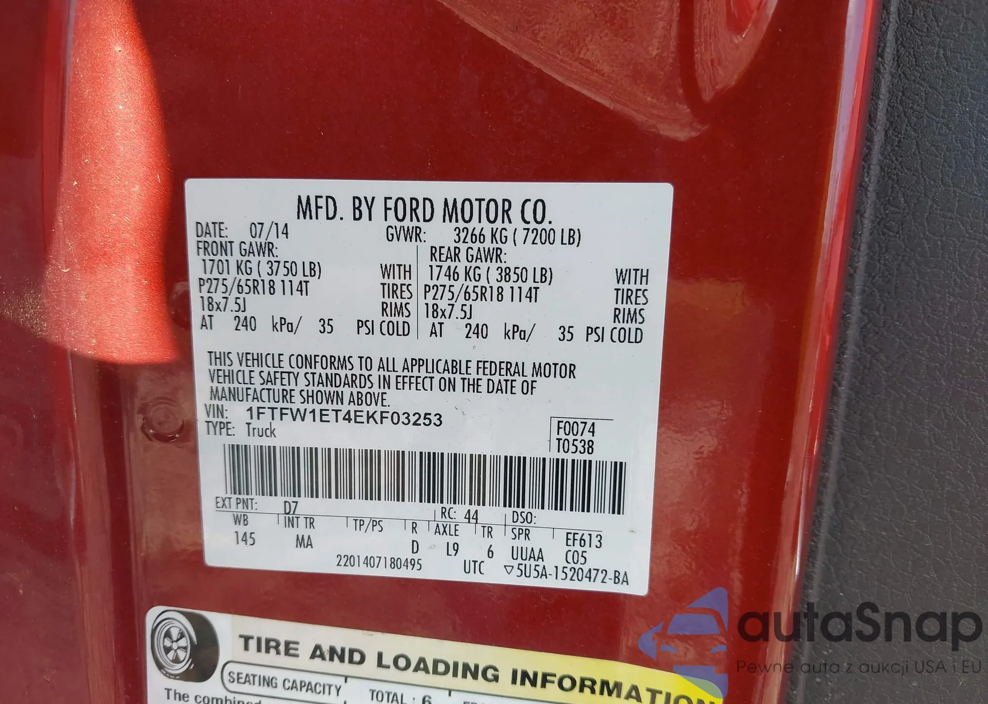 • VIN 1FTFW1ET4EKF03253