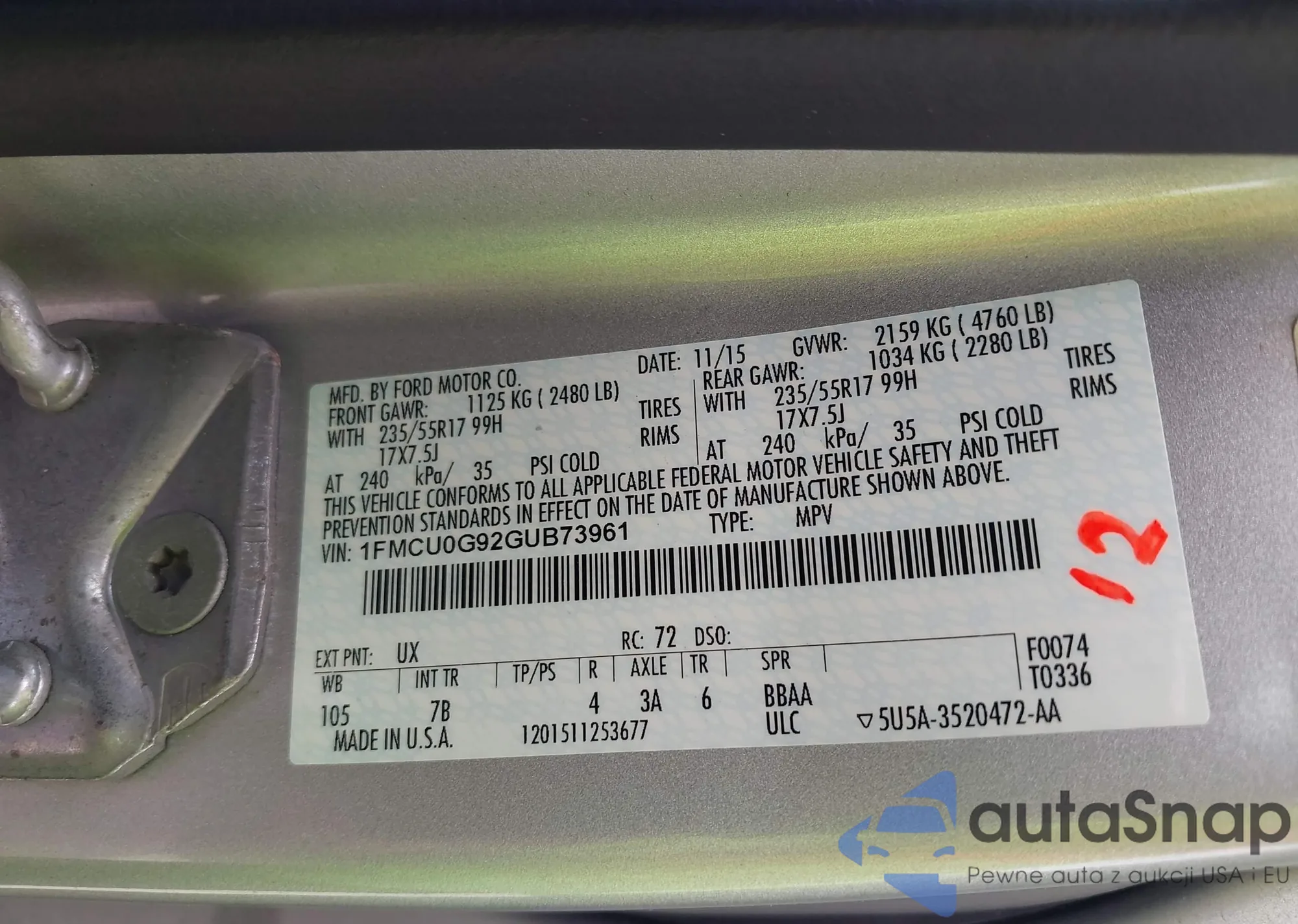 LOT: 43064746 VIN: 1FMCU9G90FUC02540